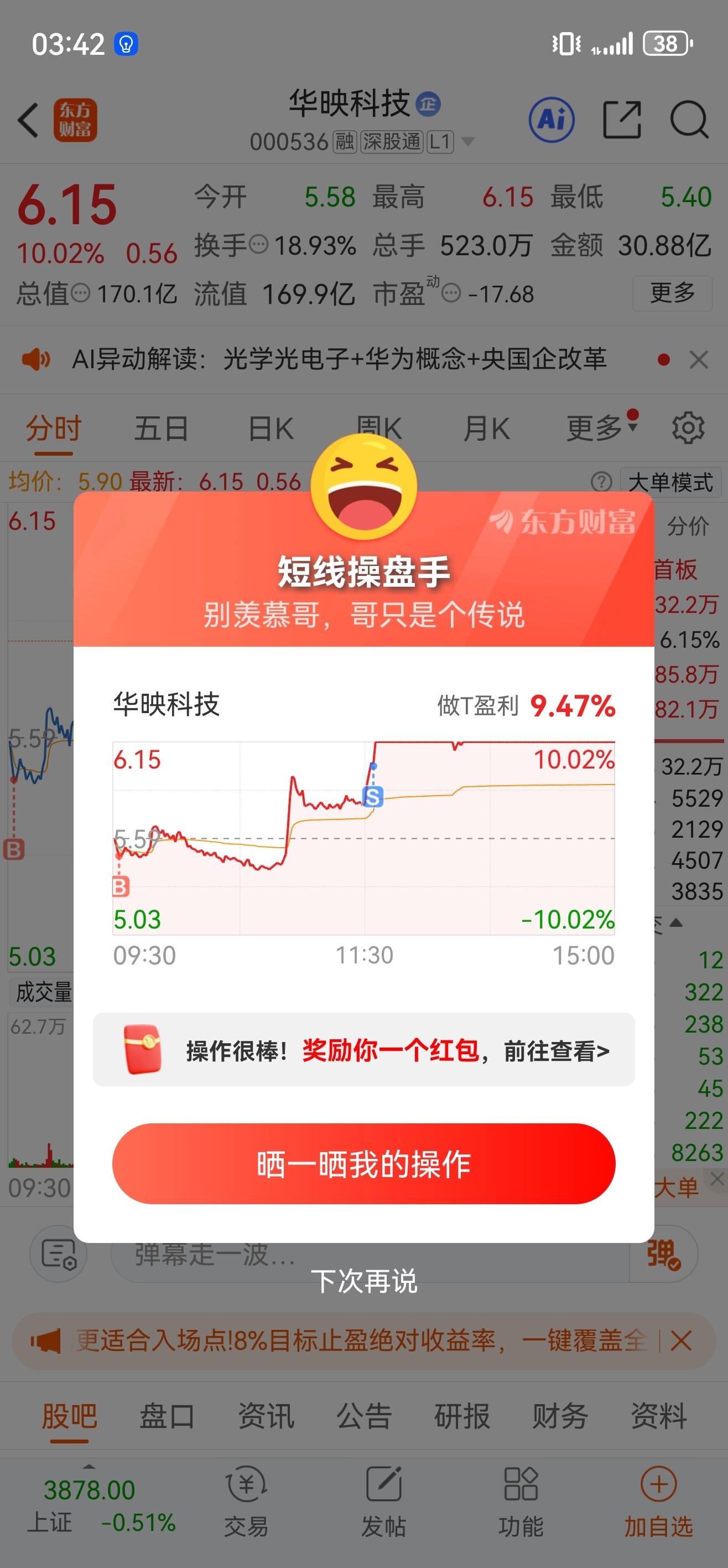 $华映科技(SZ000536)$ 经过三次T三分之一仓位入手 减完仓位还剩下三分之一仓位 可是盈利四十个点了 这就是做T的魅力