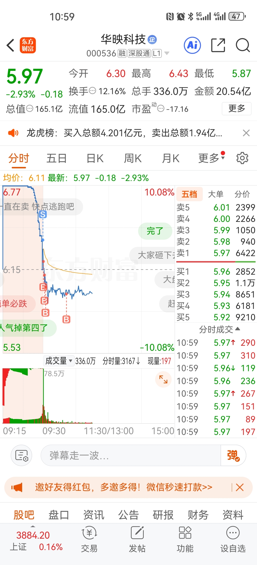 $华映科技(SZ000536)$ 今天着急了,开盘卖了怕拉起来买的位置有点高了,目前还是有情绪看多的,明天再看方向。