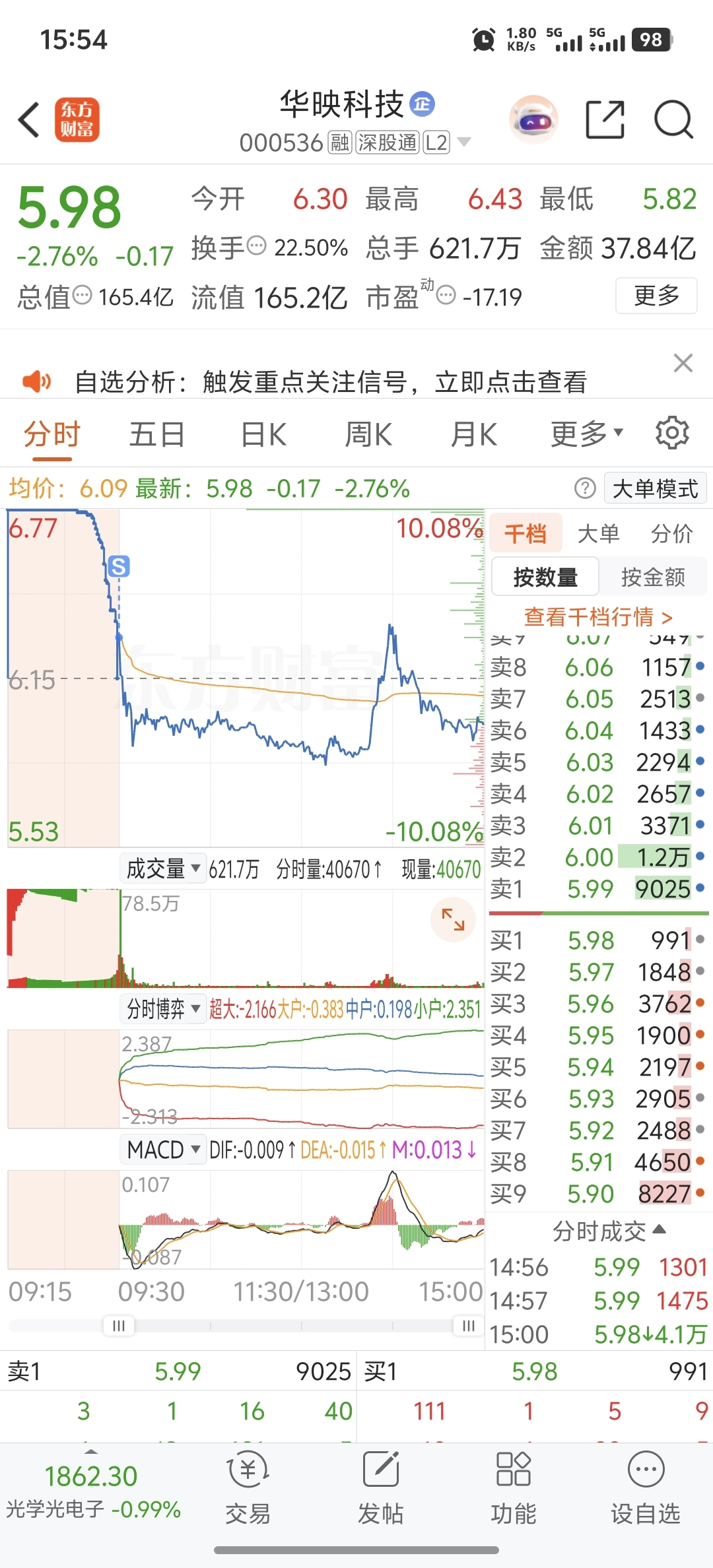 $华映科技(SZ000536)$ 本想格局的,奈何主力竞价下跌太凶,那就别怪我无情了