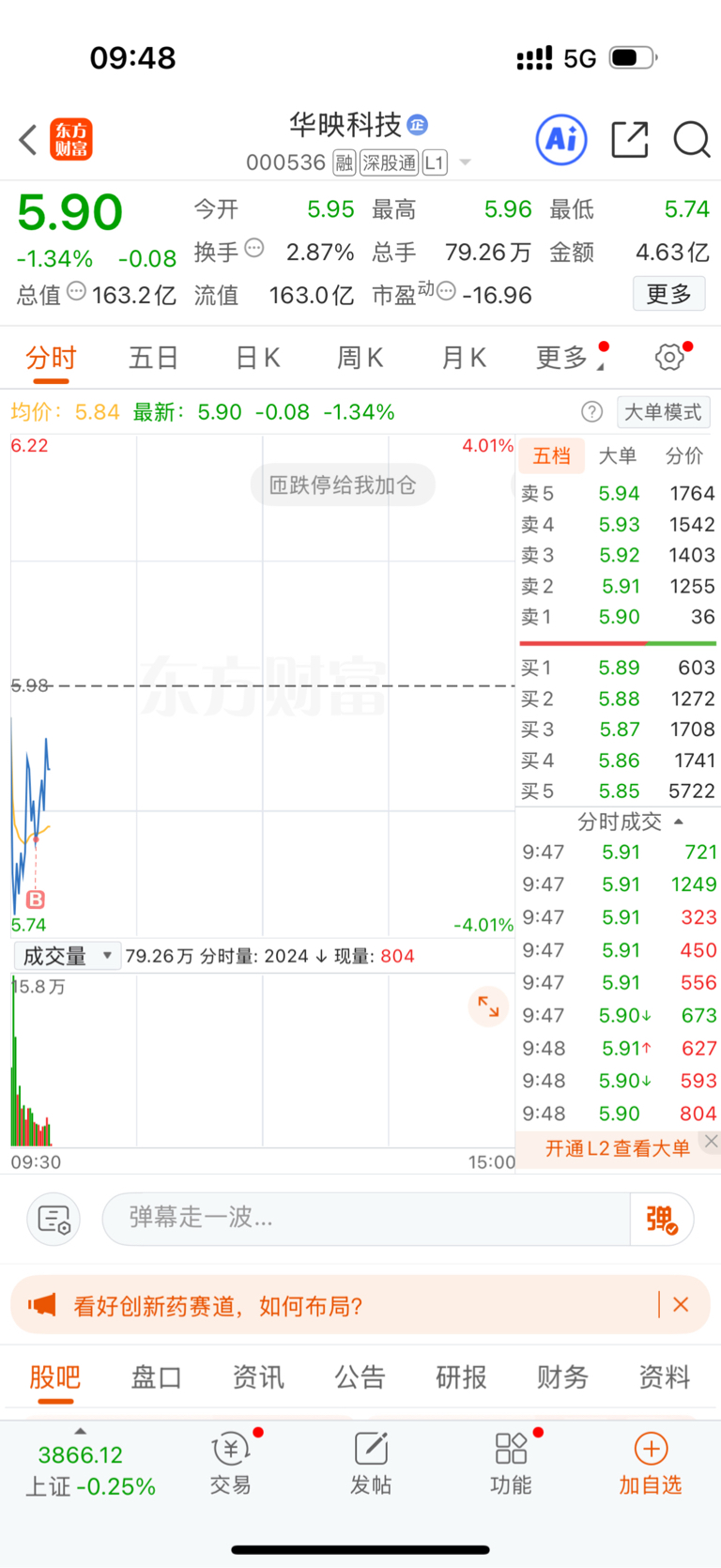 水下5.83低吸介入$华映科技(SZ000536)$ #强势机会# #实盘记录# #投资干货# #投资随笔#