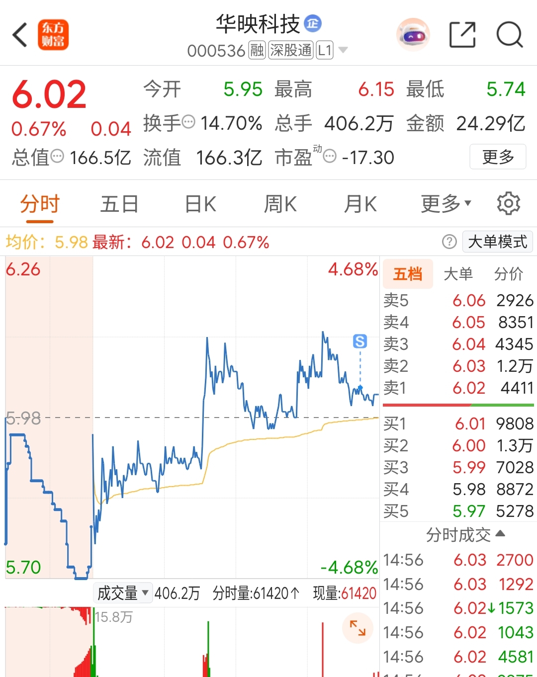 $华映科技(SZ000536)$ 他们说要st了,你成功吓住了我,昨天6.04买的,今天按计划格局到尾盘6.03出局,这种东西虽然说是别人造谣,但真怕突然来真的