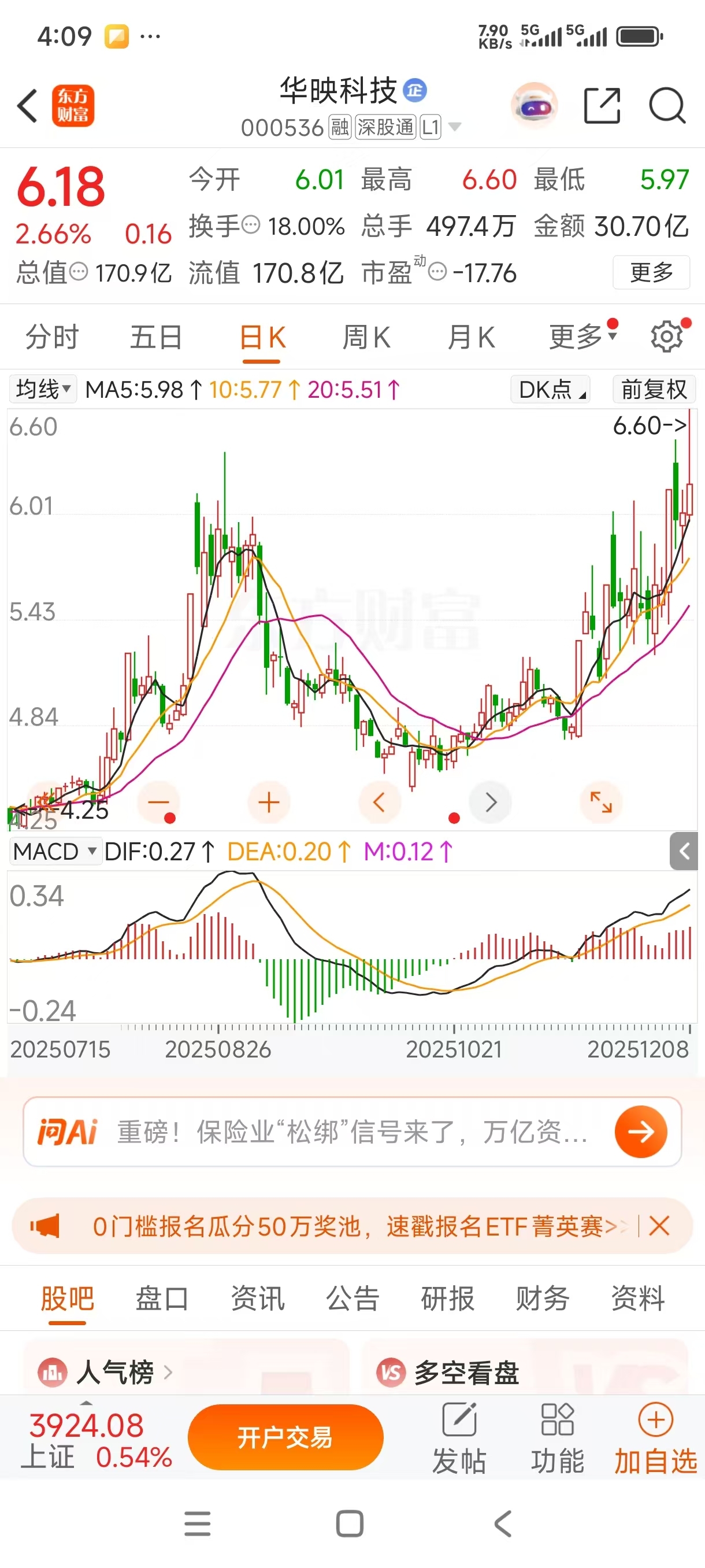 $华映科技(SZ000536)$ 上影线太长,冲高回落太多,日线有顶背离迹象,更象是筹码逢高派发。预期不要太高