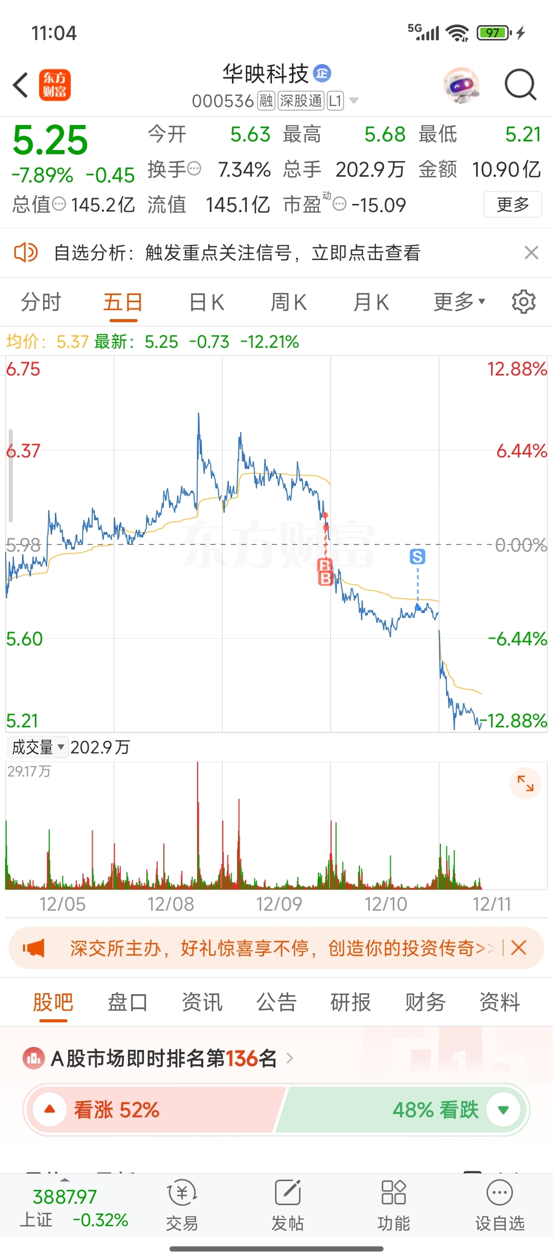 $华映科技(SZ000536)$ 买错了就要认,亏4个点割肉的