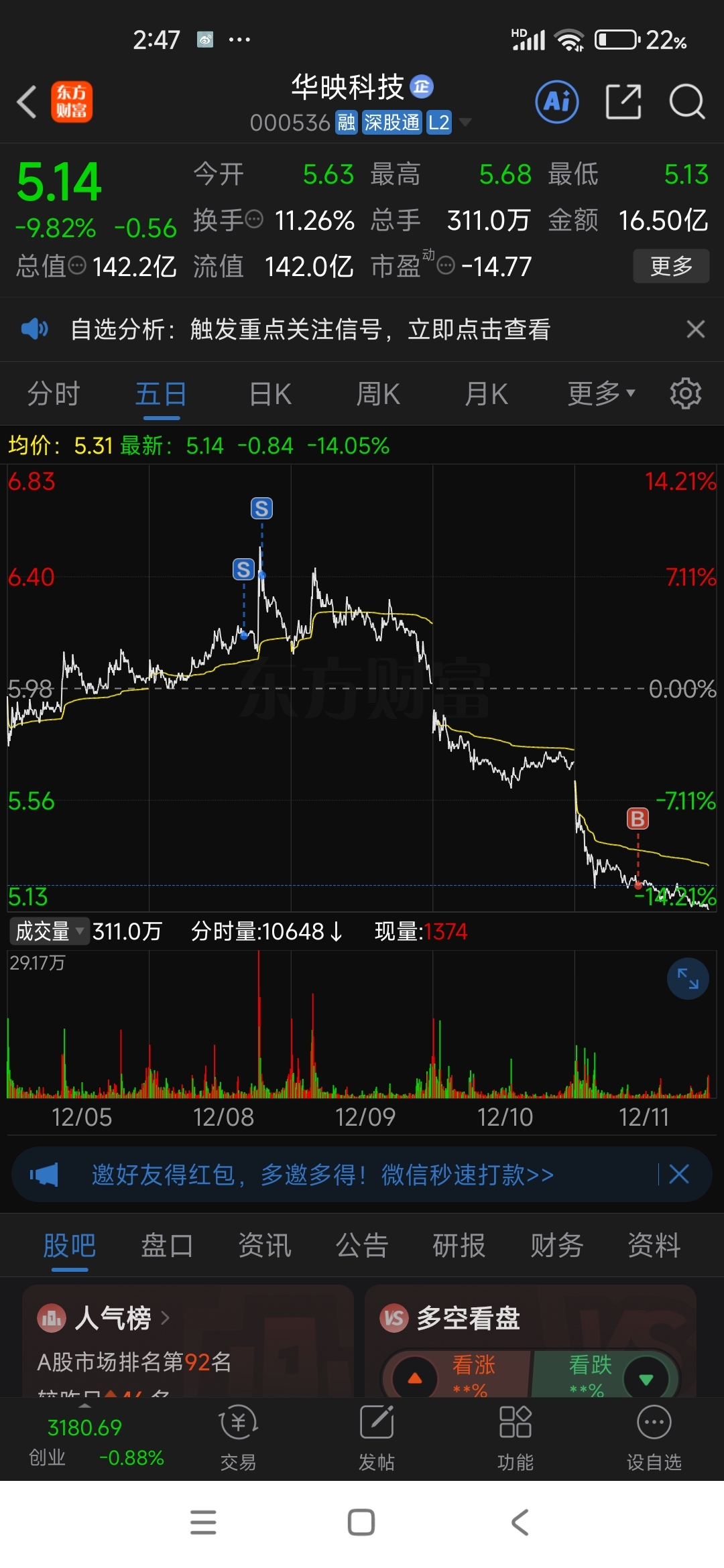 $华映科技(SZ000536)$ 主动买套了,明天情况不对就多杀吧割肉吧。