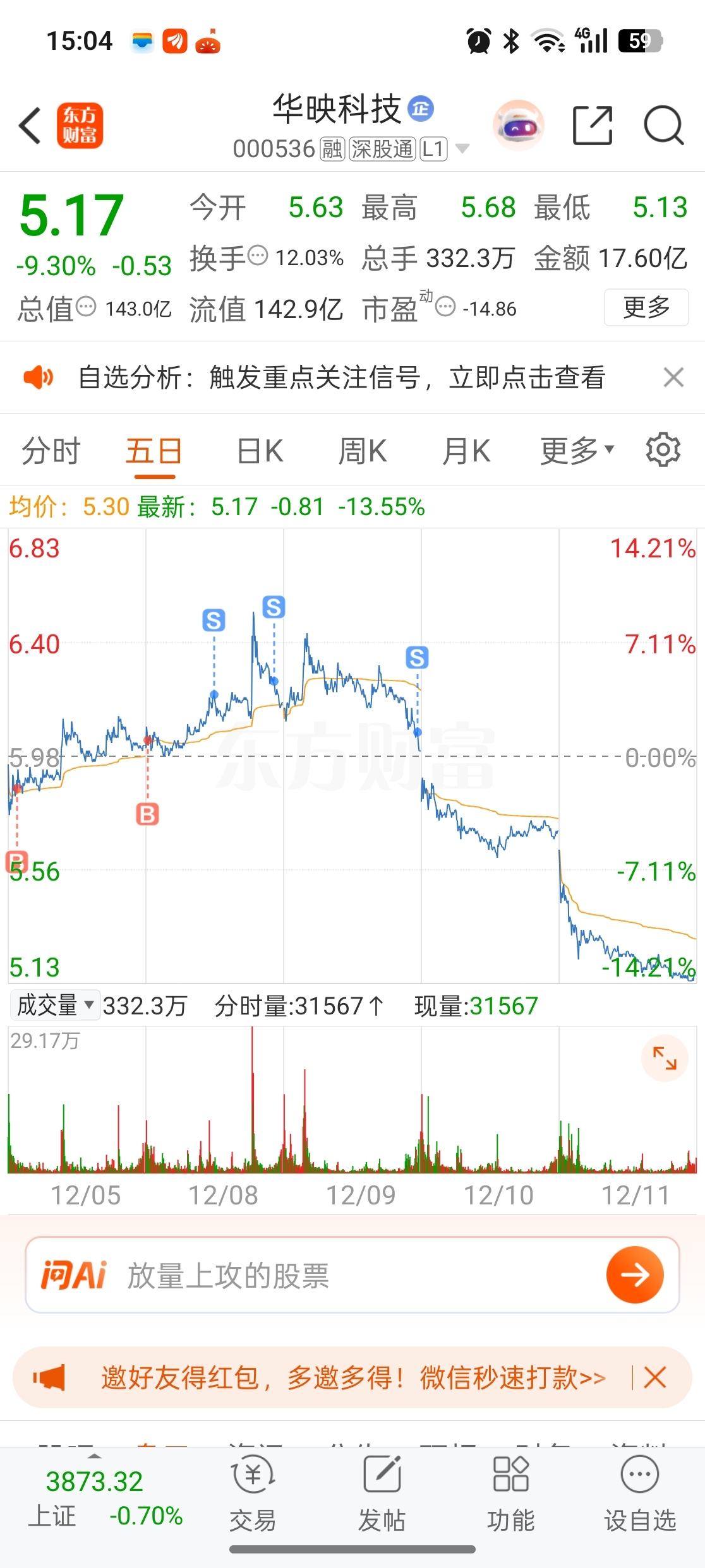 $华映科技(SZ000536)$ 放量继续下探,站稳再回来接。明天4字头是肯定的。