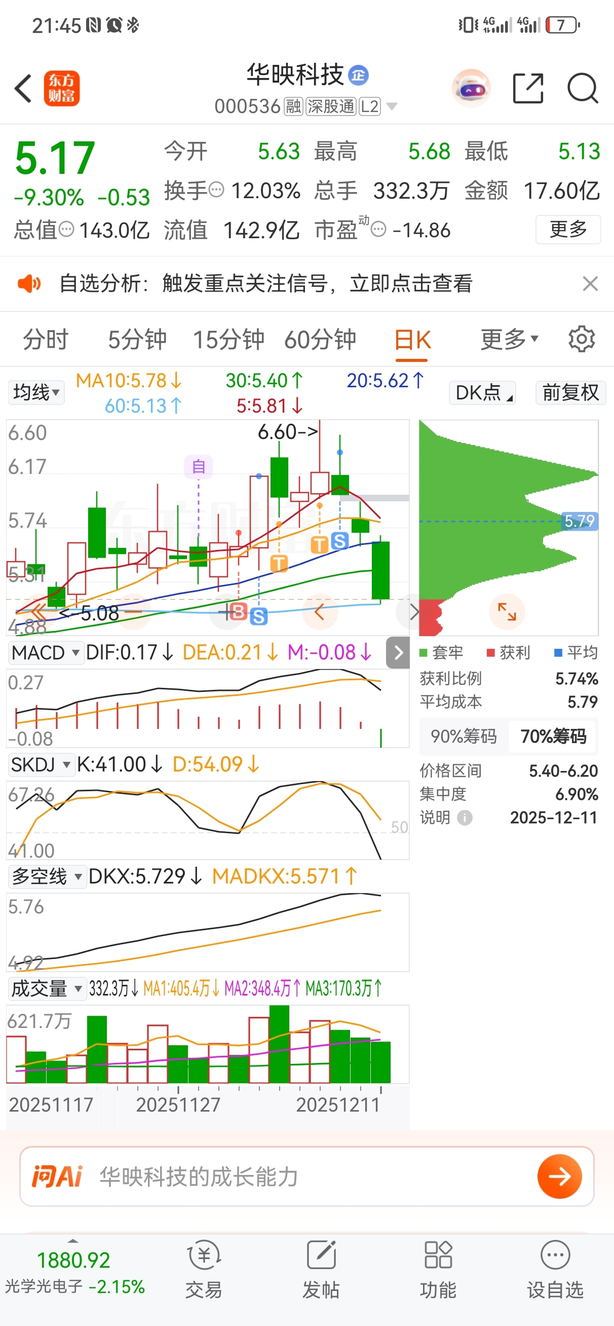 $华映科技(SZ000536)$ 赚了就要跑,不要有任何执念,最近流行断头杀。