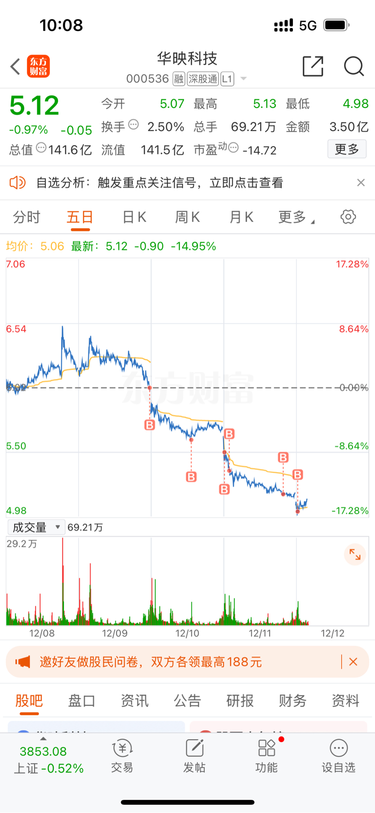 $华映科技(SZ000536)$ 一入股市深似海 各位同胞补不动了 已经满仓 生死由命吧 接下来是个漫长煎熬的日子 我做好心理准备了 有可能退市