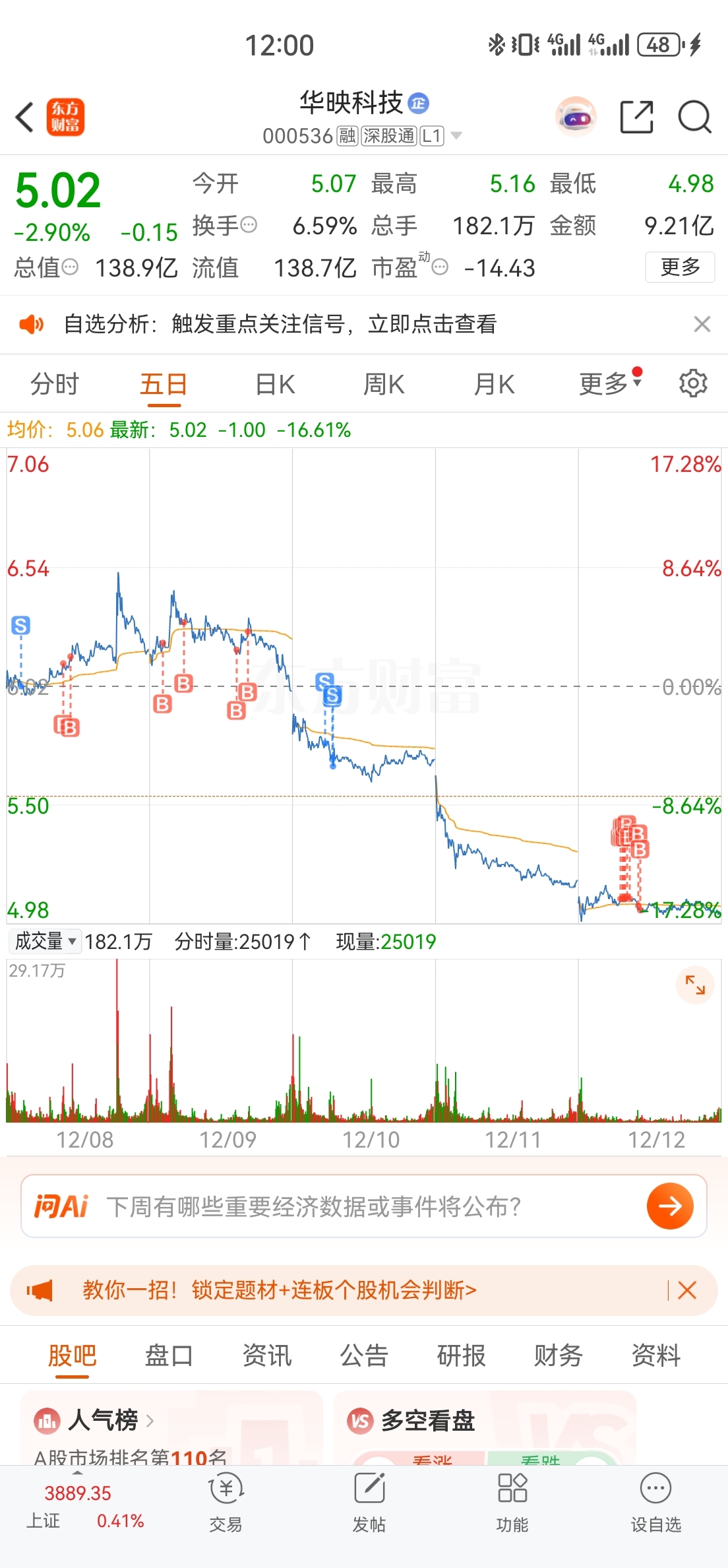 $华映科技(SZ000536)$ 看来今天重仓补的,读对了。目前成本价5.53。一个涨停回本,加油!