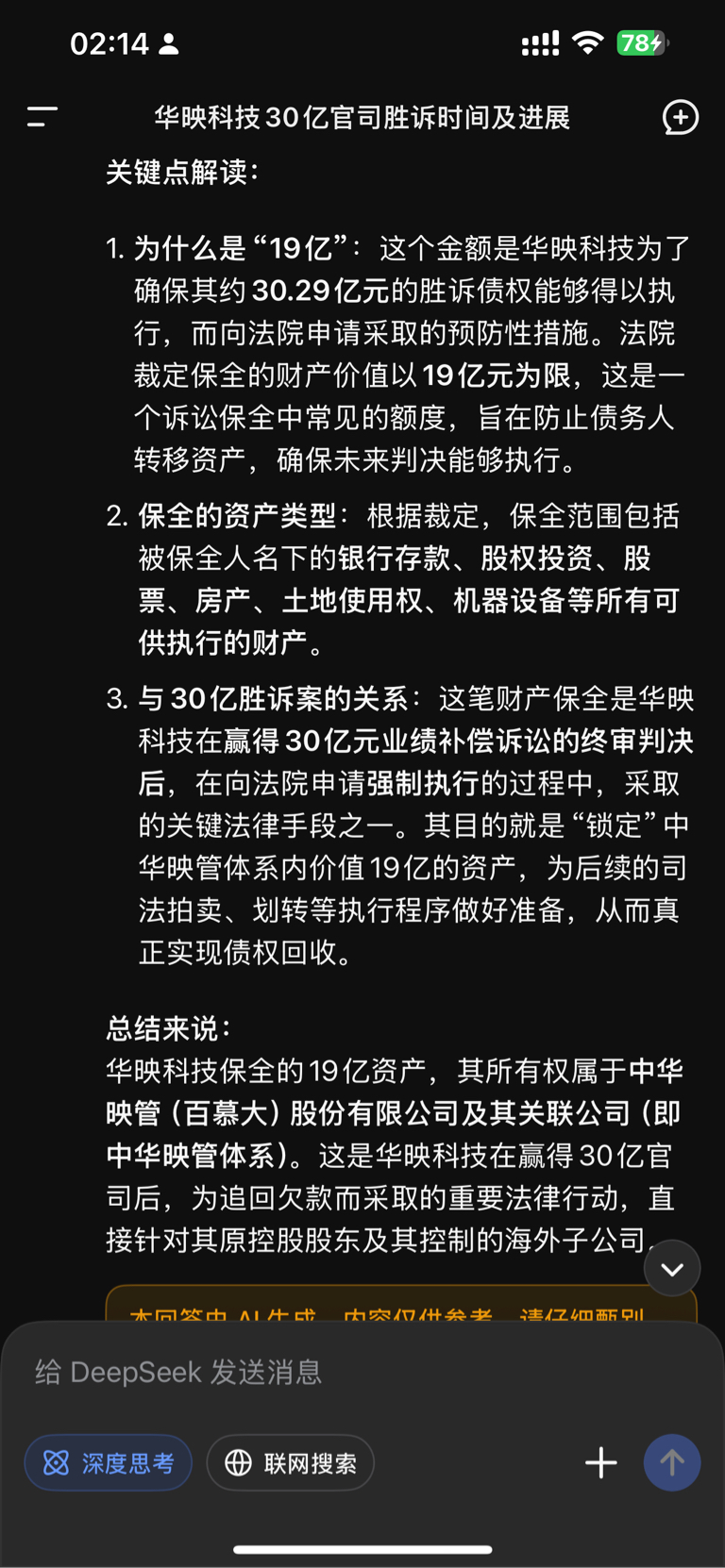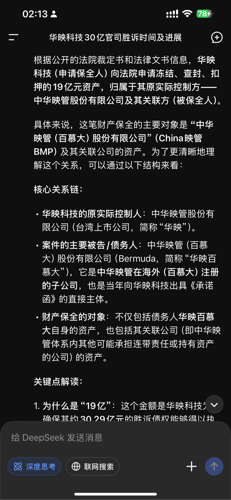 $华映科技(SZ000536)$ 根据公开的法院裁定书和法律文书信息,华映科技(申请保全人)向法院申请冻结、查封、扣押的19亿资产归属于其原实际控制方——中华映管股份有限公司其关联方(被保全人)