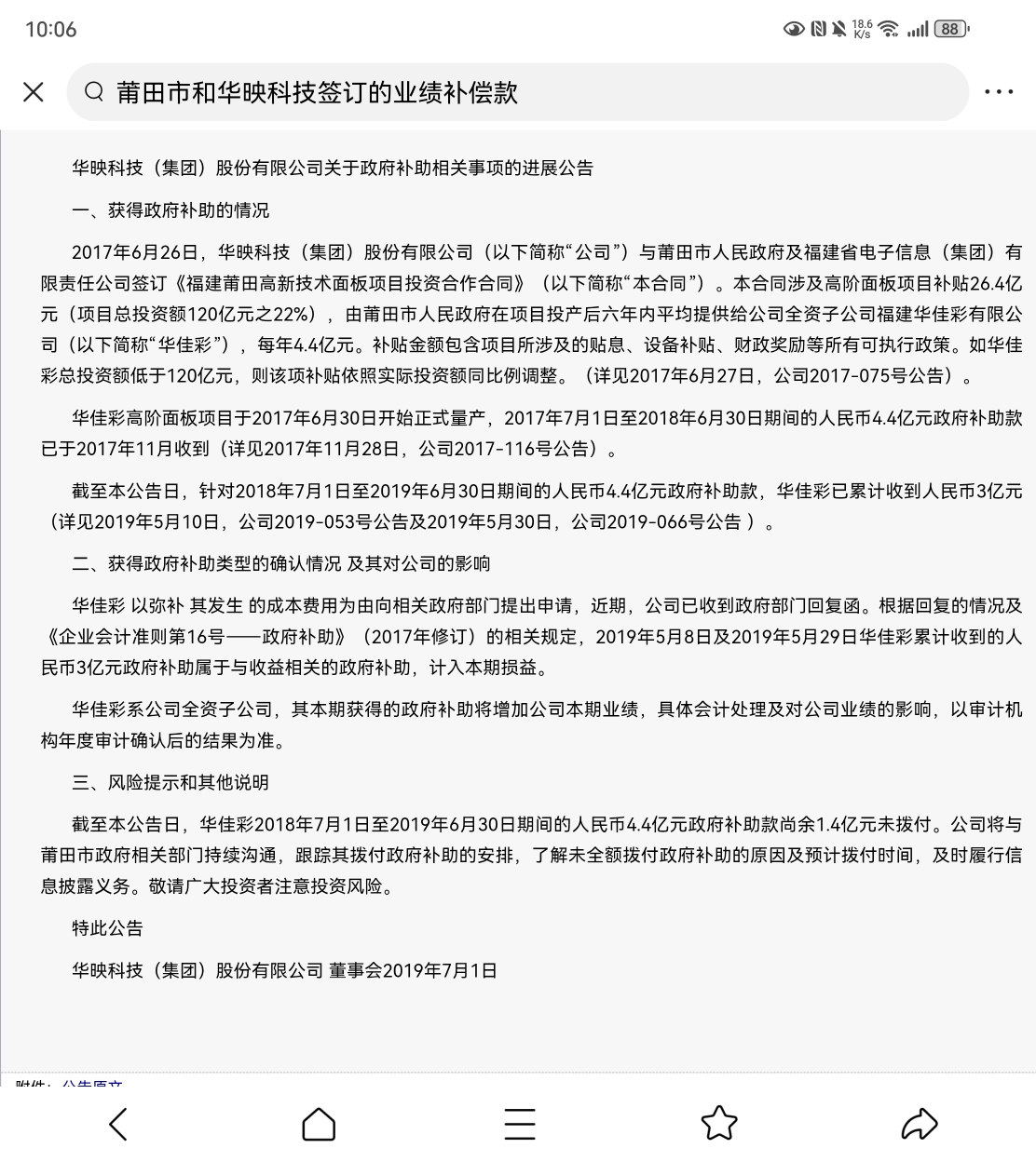 请问董秘,既然中华映管的30亿已经打官司拿回来了,那么和莆田市政府签订的业绩补偿