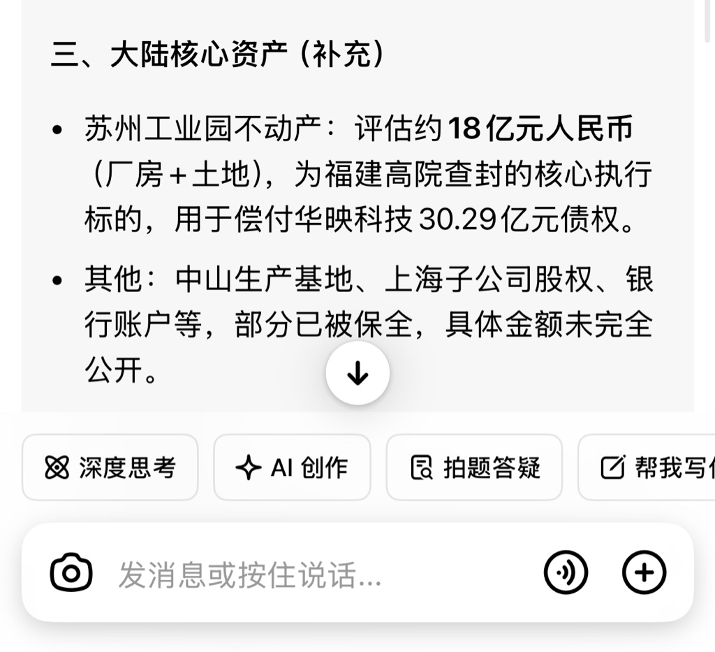 此外,向法院申请财产保全的中华映管百慕大公司持有的市值1 3亿多(2点5亿股)的映科技股票。