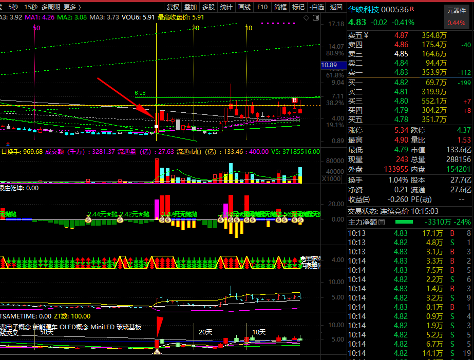 $华映科技(SZ000536)$ 今天刚好踩到 9 月 28 月线收盘价 4.79 了,应该是跌的差不多了,该企稳了
