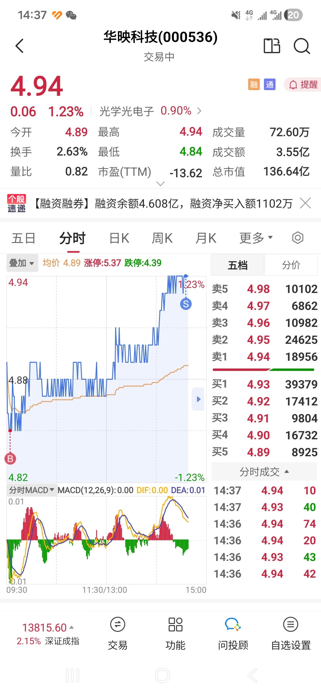 $华映科技(SZ000536)$ 4.95的本,感觉今天冲不上来了,明天低开再来吧。