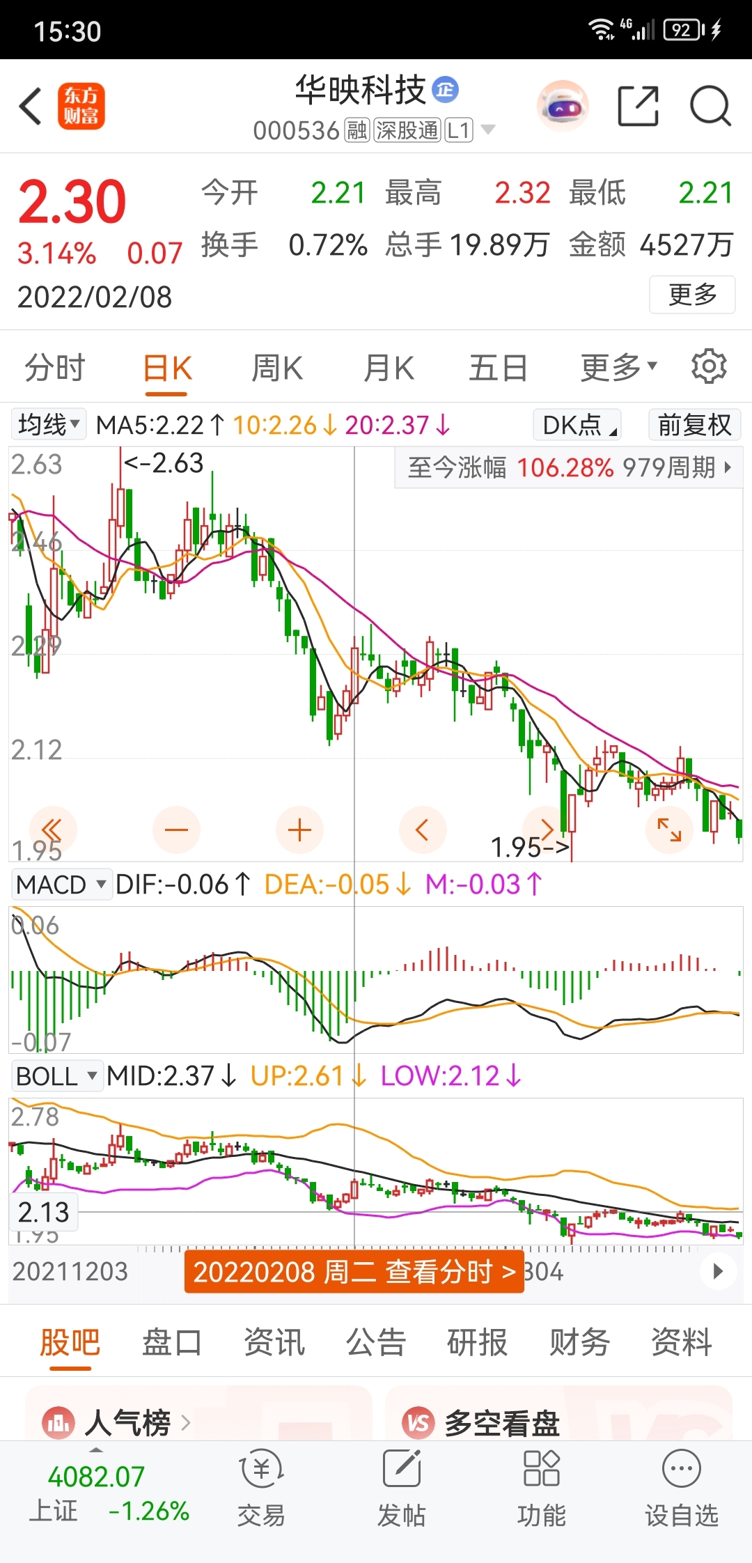 2022年那一段统计了一个交易日涨了3.14%,后面继续阴跌了多久请看图2