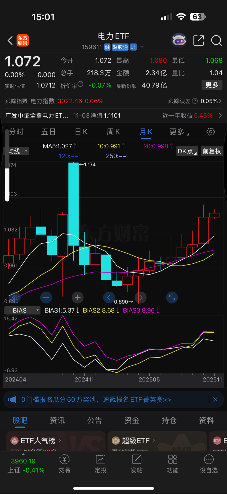 $中绿电(SZ000537)$ 9个月 8个月是阳,比行业etf走的垃圾