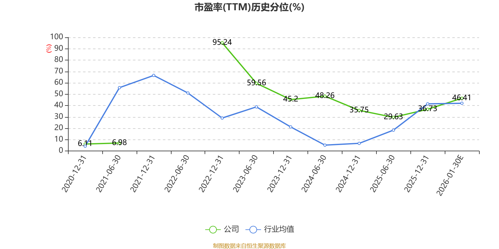 市盈率、市净率为负时,不显示当期分位数,会导致折线图中断。