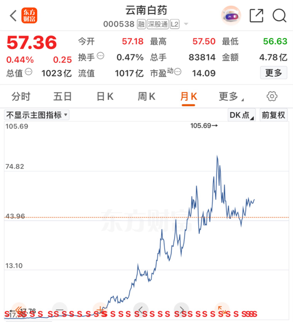 $云南白药(SZ000538)$ 穿越多轮牛熊的价值股,每一次牛总不会缺席,只是出现的时间问题!安静的持有即可!