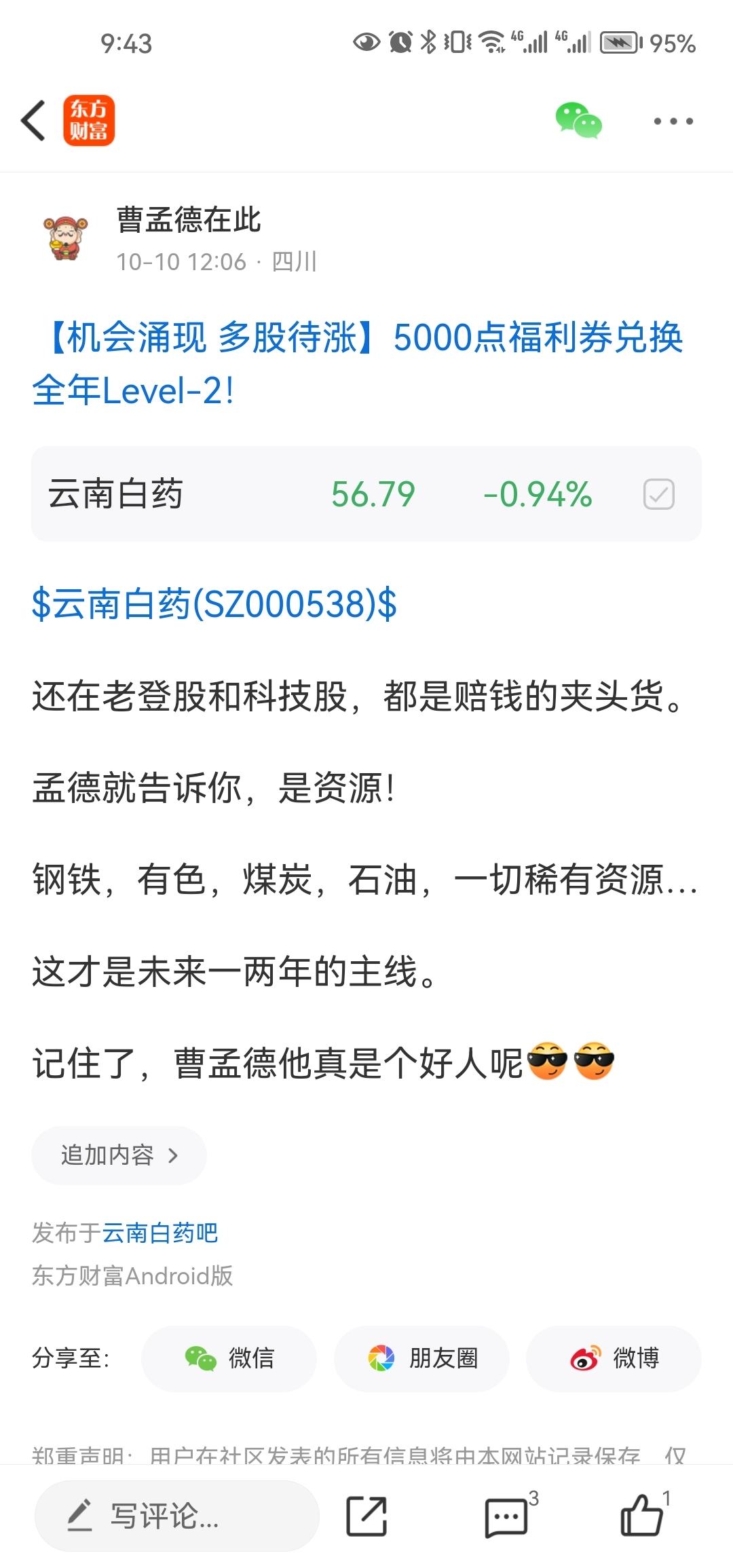 温馨提示: 1.根据《证券法》规定,禁止编造、传播虚假信息或者误导性信息,扰乱证券市场;2.用户在本社区发表的所有资料、言论等仅代表个人观点,与本网站立场无关,不对您构成任何投资建议。用户应基于自己的独立判断,自行决定证券投资并承担相应风险。《东方财富社区管理规定》