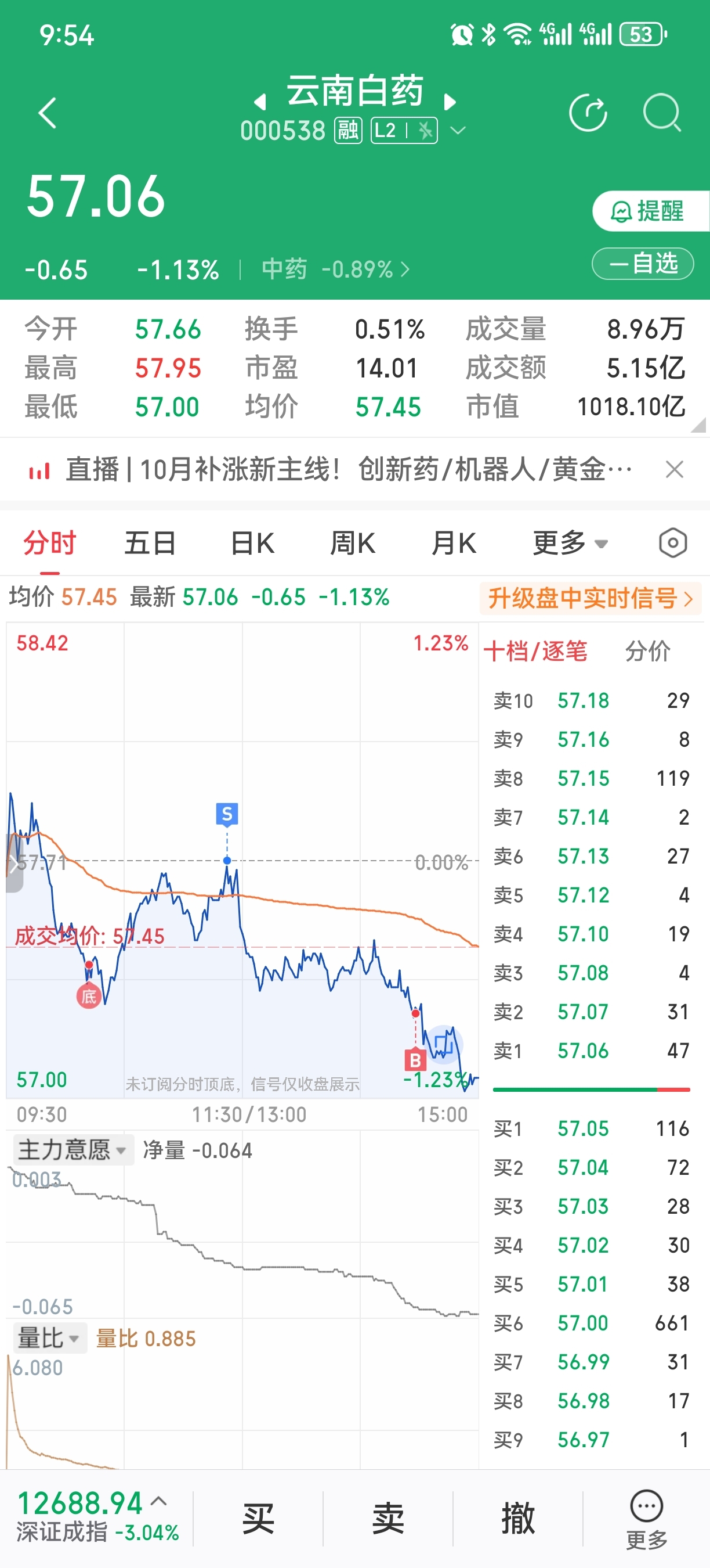$云南白药(SZ000538)$ 今天,全部被闷,最后半小时就垮塌了,别人涨多了跌,你又没涨什么跟错风了