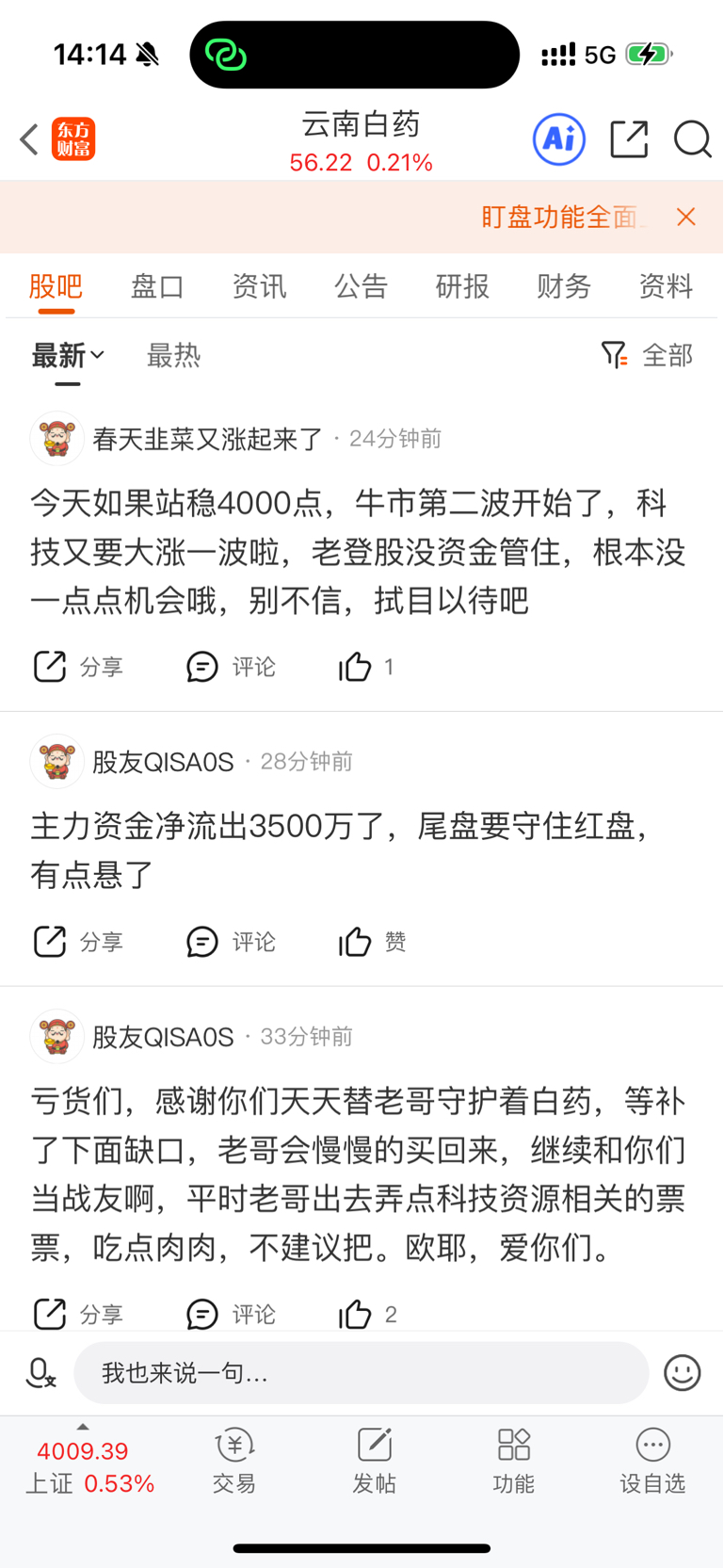 $云南白药(SZ000538)$ 今天怎么回事俩号一起上?