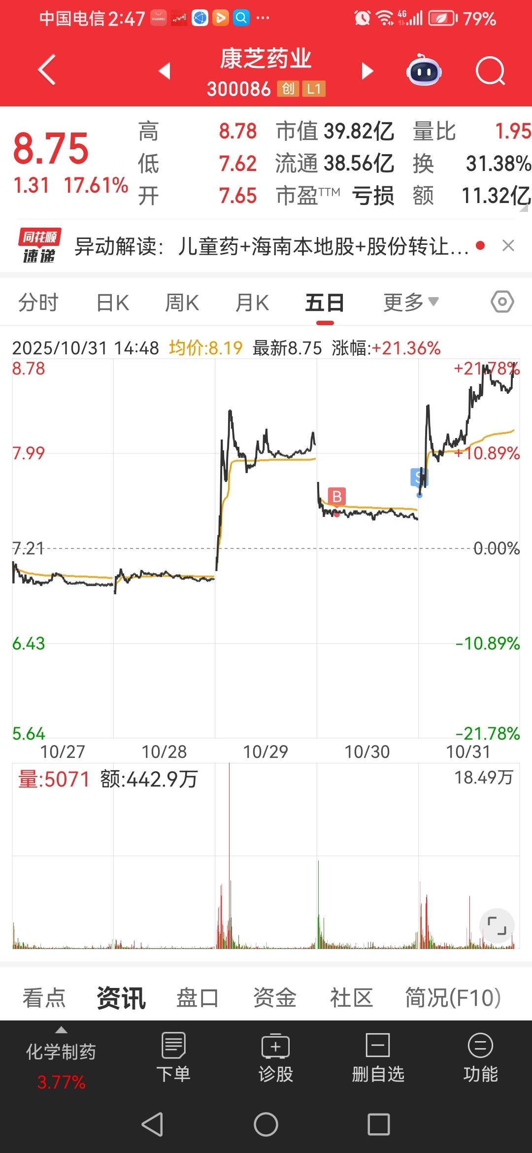$云南白药(SZ000538)$ 昨天买个医药被套,卖飞了就忘记买白药做T,太可惜了。#复盘记录#