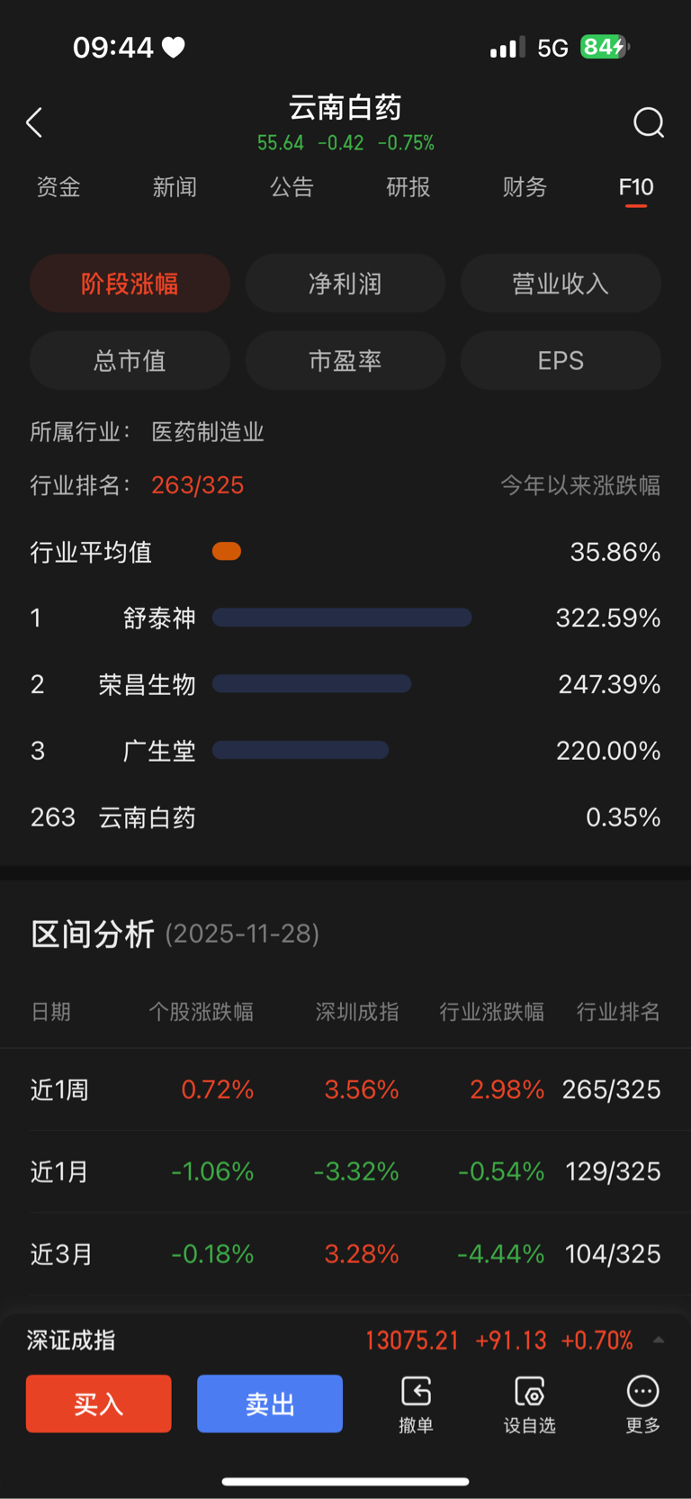 $云南白药(SZ000538)$ 这一年来云南白药的涨幅只有0.35%,排在行业200多名,这品牌是不是要落寞了。