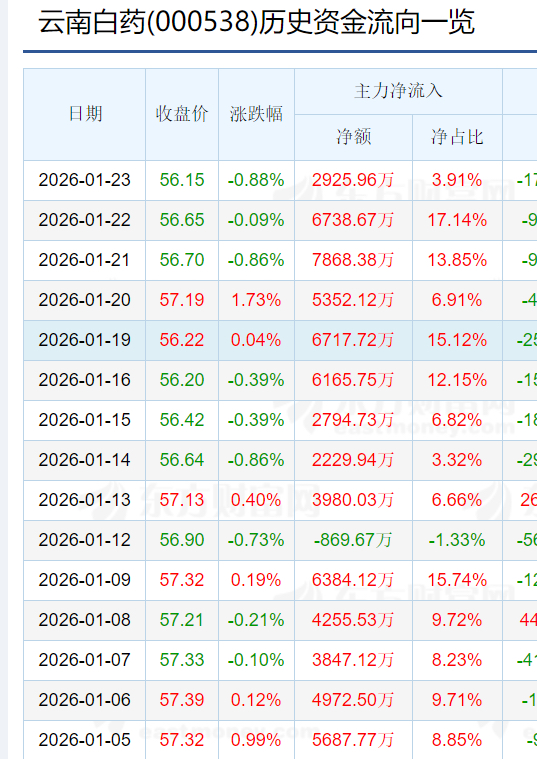 $云南白药(SZ000538)$ 连续这么多天流入,股价确跌,什么情况