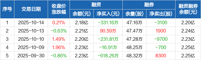粤电力A:融资净偿还331.16万元,融资余额2.18亿元(10-14)