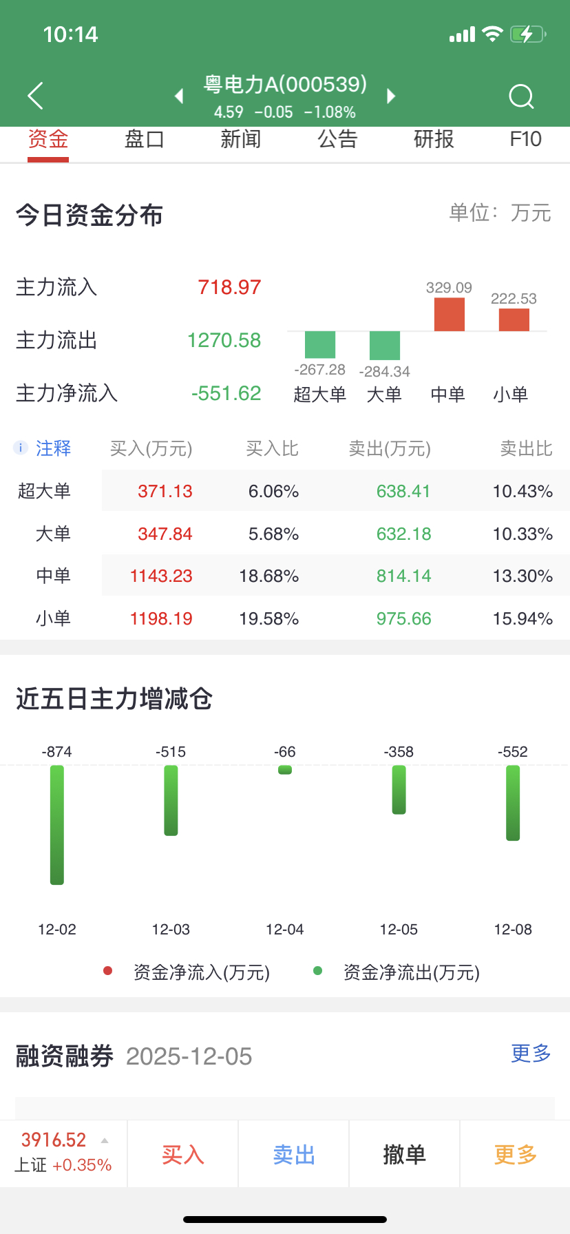 粤电力,到底发生什么事了,主力资金天天出逃!