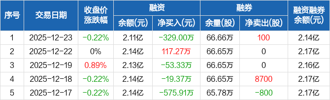 粤电力A:融资净偿还329万元,融资余额2.11亿元(12-23)