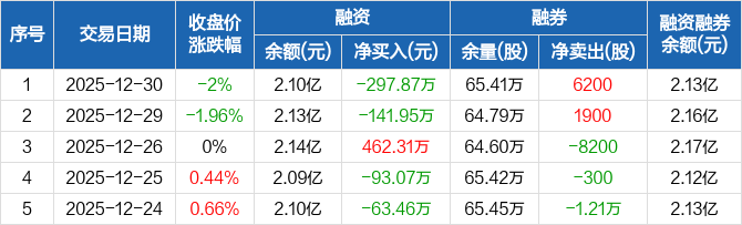 粤电力A:融资净偿还297.87万元,融资余额2.1亿元(12-30)
