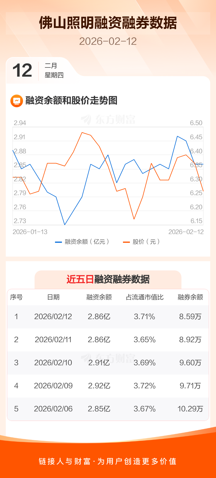 交易所最新数据显示,佛山照明于2026年2月12日获融资买入632.52万元,融资偿还640.44万元,当日融资净偿还7.92万元。目前,该股融资余额2.86亿,占流通市值比例为3.71%。