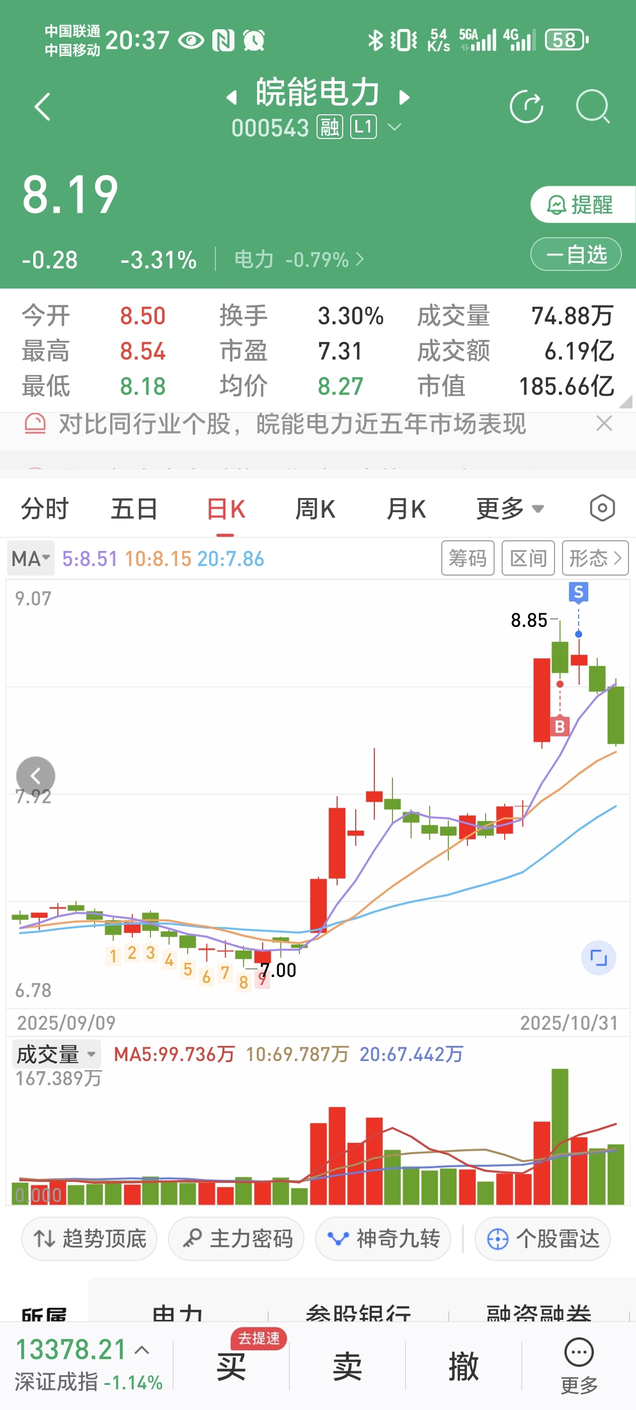 $皖能电力(SZ000543)$ 这市场真难玩,多格局一天都不行