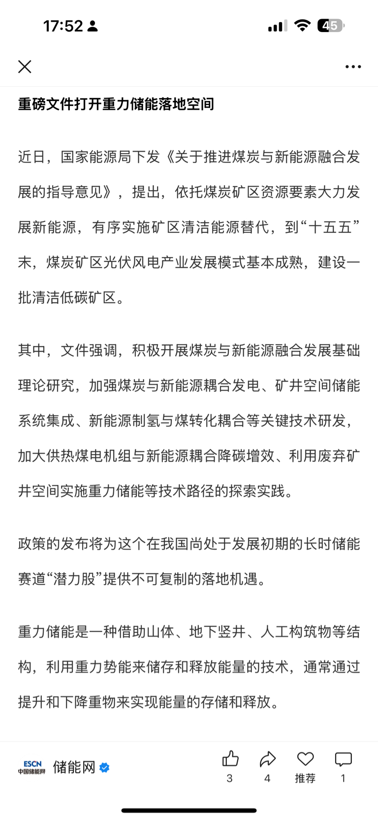 $皖能电力(SZ000543)$ 煤炭矿区低碳转型,将为重力储能打开规模化落地空间