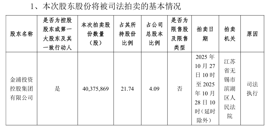 值得注意的是,9月25日晚间,金浦钛业公告,近日,公司通过控股股东金浦集团获悉,因案件执行需要,江苏省无锡市滨湖区人民法院将于2025年10月27日10时至2025年10 月28日10时(延时除外)在京东司法拍卖网络平台对金浦集团持有的金浦钛业4038万股无限售流通股进行第一次公开拍卖,起拍价为9383万元,加价幅度为15万元。据公告,本次司法拍卖系因申请执行人宁波海广资产管理有限公司与被执行人金浦集团债务纠纷。