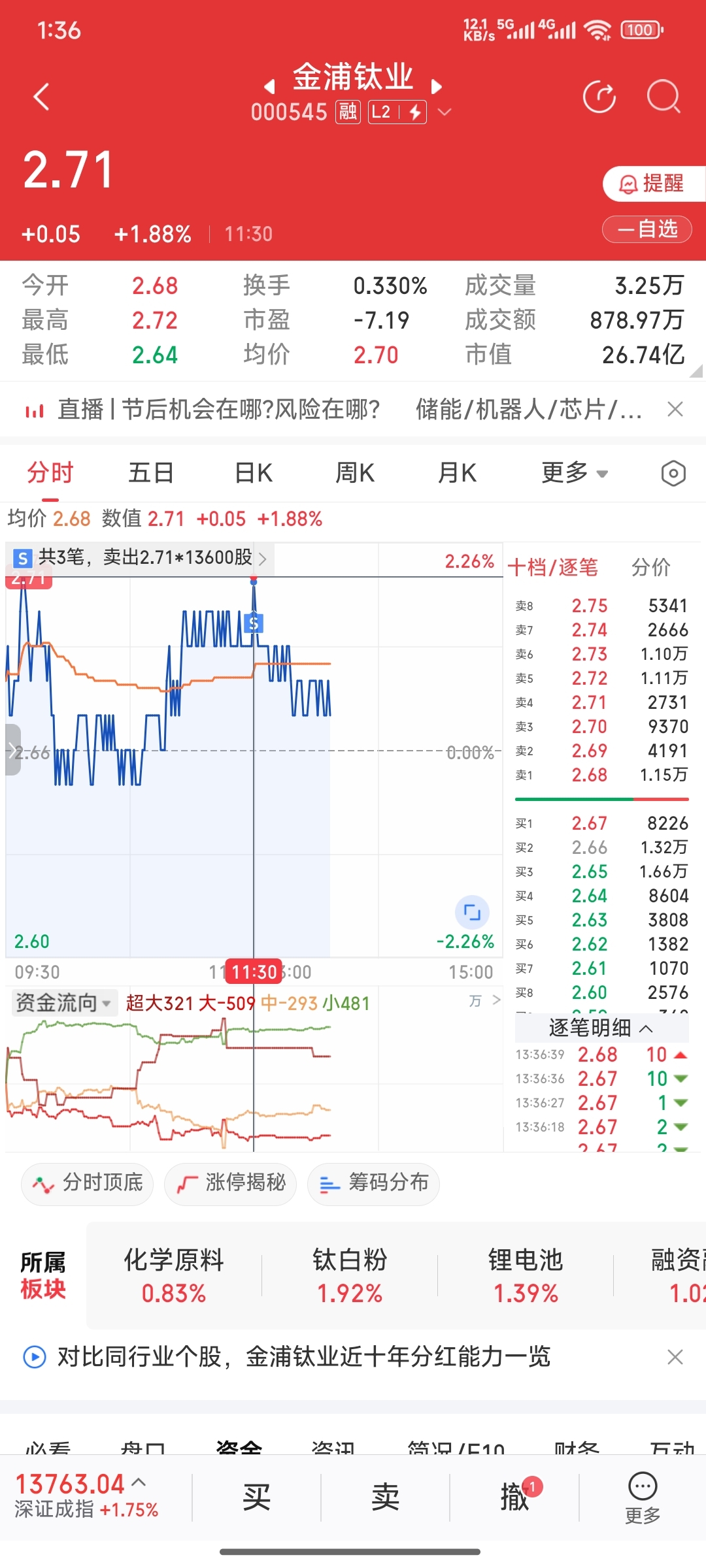 $金浦钛业(SZ000545)$ 今天还算是在高点清掉了