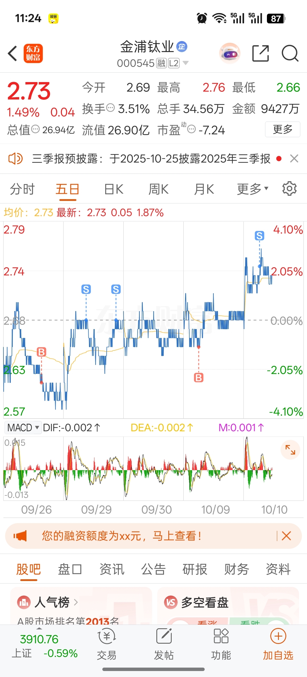 $金浦钛业(SZ000545)$ 清仓了