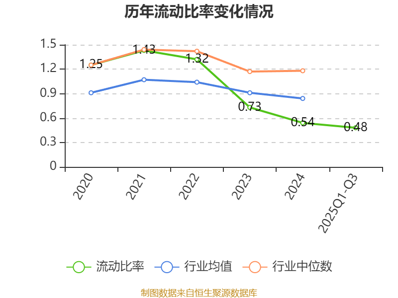 2025年前三季度,公司流动比率为0.48,速动比率为0.39。