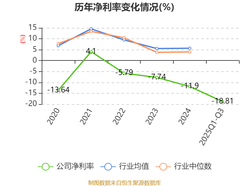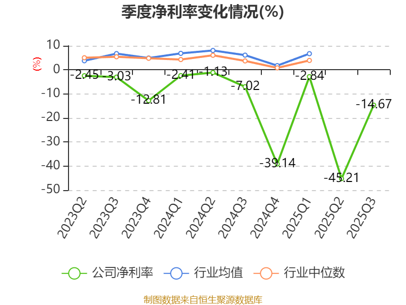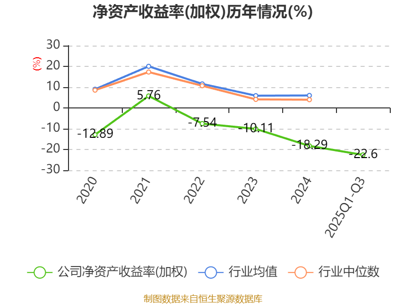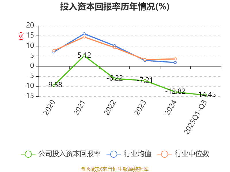 盈利能力方面, 2025年前三季度公司加权平均净资产收益率为-22.6%,同比下降18.77个百分点。公司2025年前三季度投入资本回报率为-14.45%,较上年同期下降12.12个百分点。