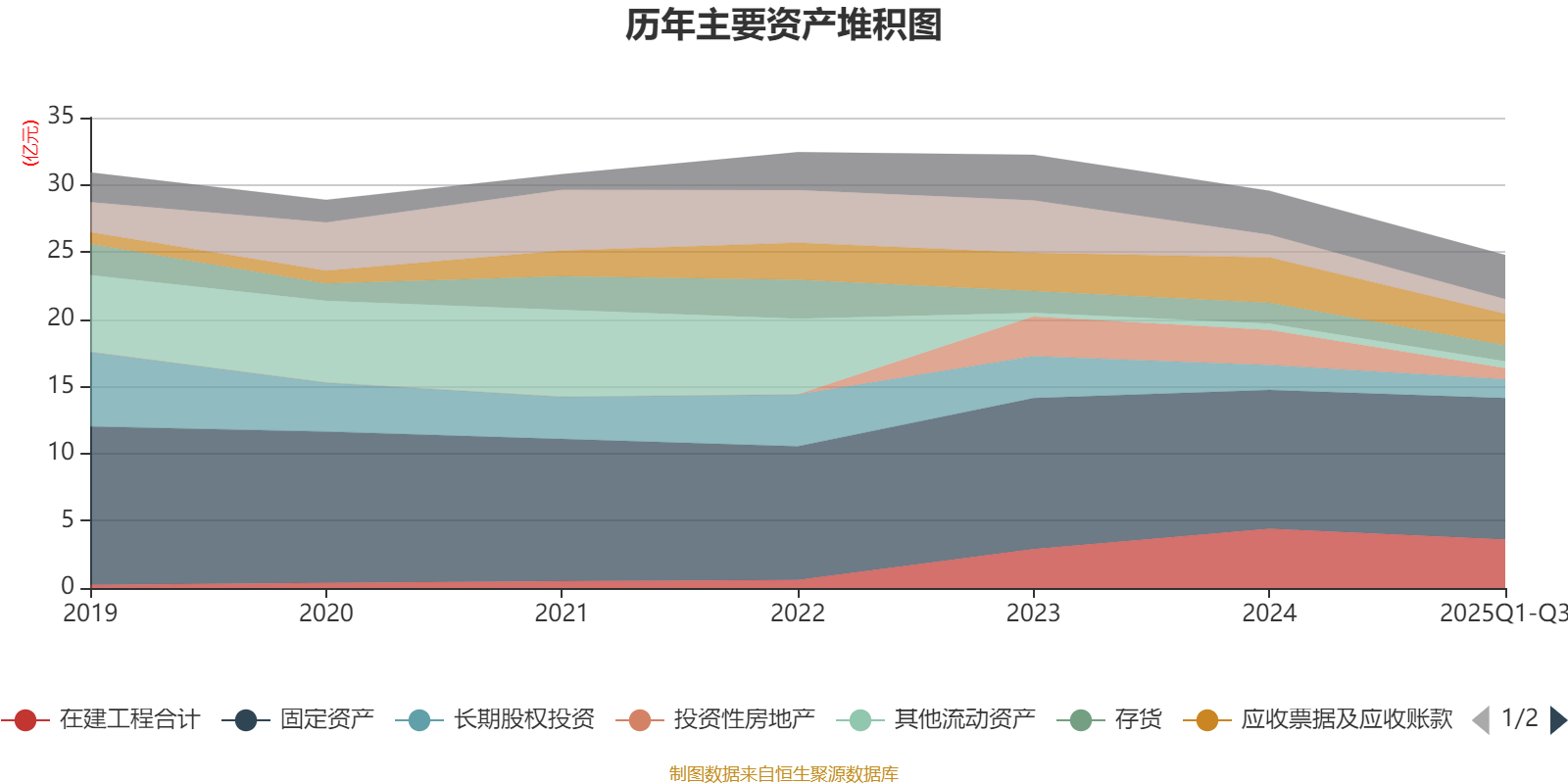 资产重大变化方面,截至2025年三季度末,公司固定资产较上年末增加1.84%,占公司总资产比重上升7.5个百分点;投资性房地产较上年末减少68.65%,占公司总资产比重下降5.52个百分点;应收票据及应收账款较上年末减少31.33%,占公司总资产比重下降2.07个百分点;递延所得税资产较上年末增加30.79%,占公司总资产比重上升1.69个百分点。