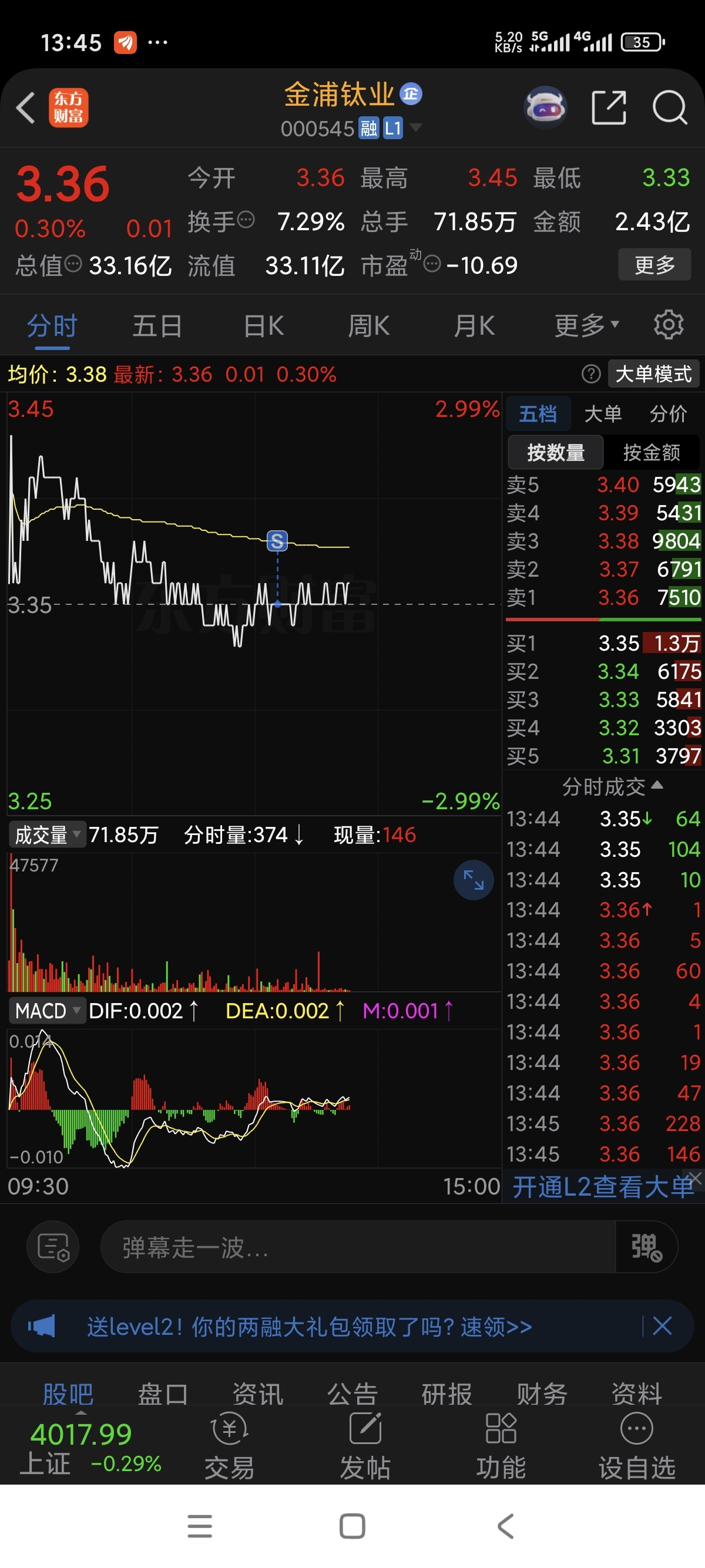 $金浦钛业(SZ000545)$ 保本撤退了。留下的发财