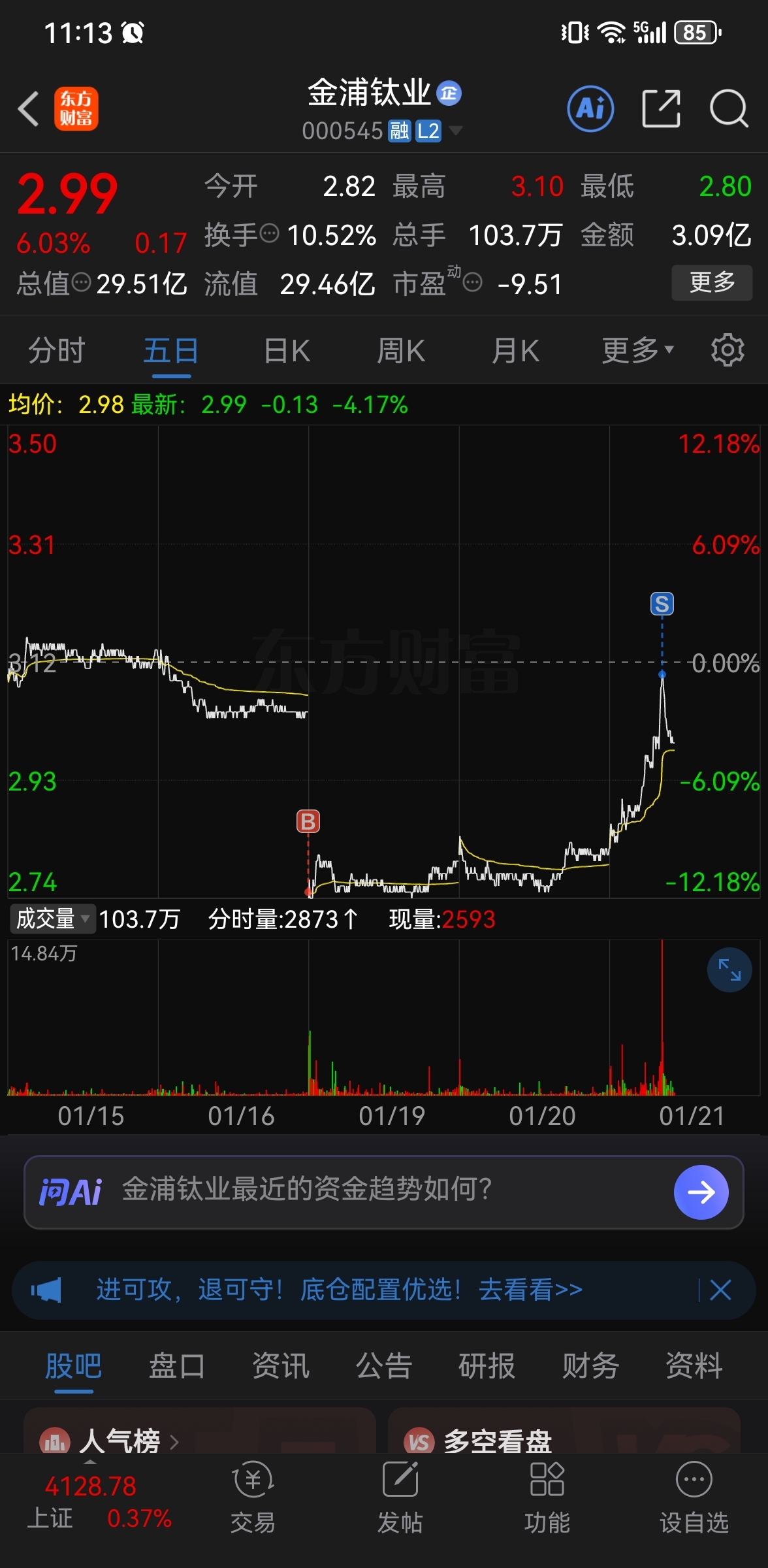 $金浦钛业(SZ000545)$ 我走了 我没有格局