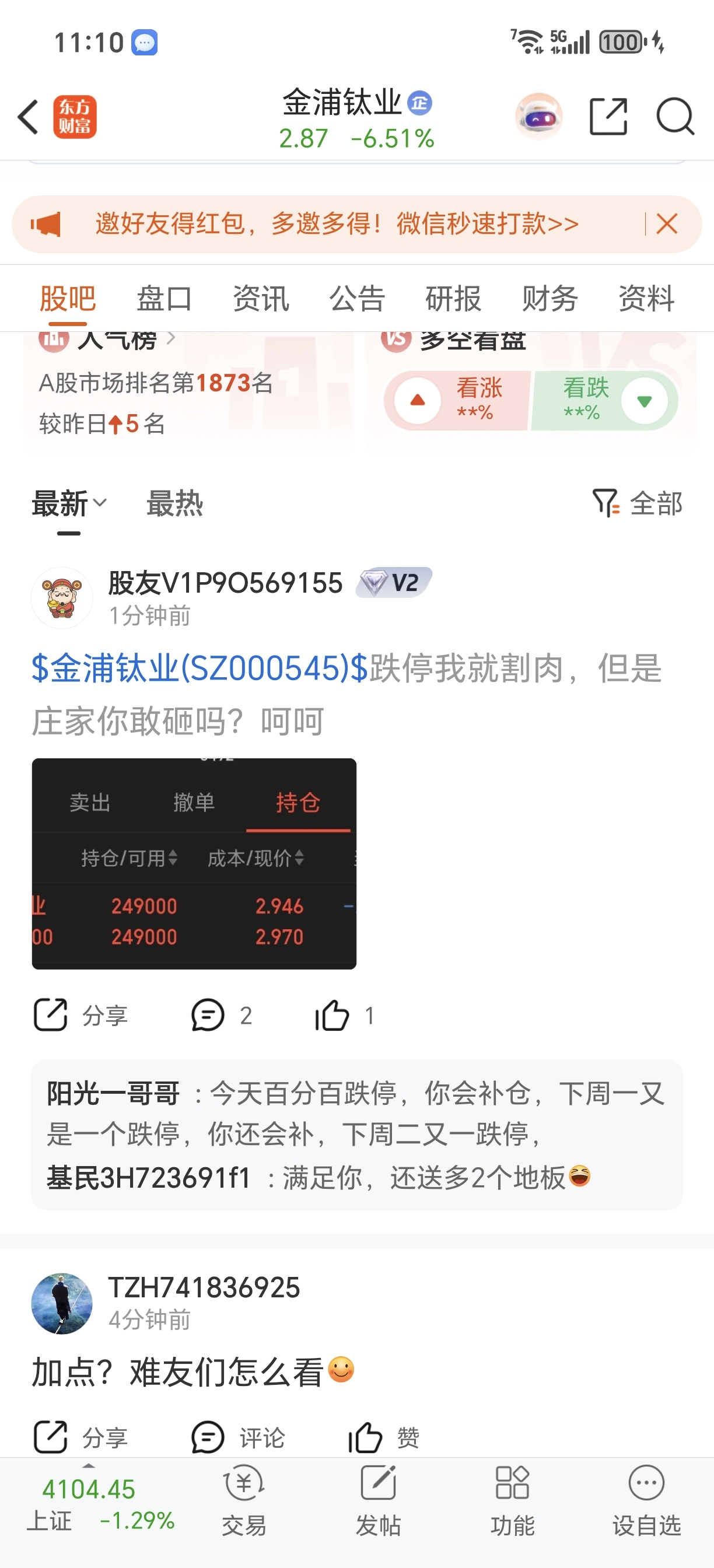 温馨提示: 1.根据《证券法》规定,禁止编造、传播虚假信息或者误导性信息,扰乱证券市场;2.用户在本社区发表的所有资料、言论等仅代表个人观点,与本网站立场无关,不对您构成任何投资建议。用户应基于自己的独立判断,自行决定证券投资并承担相应风险。《东方财富社区管理规定》