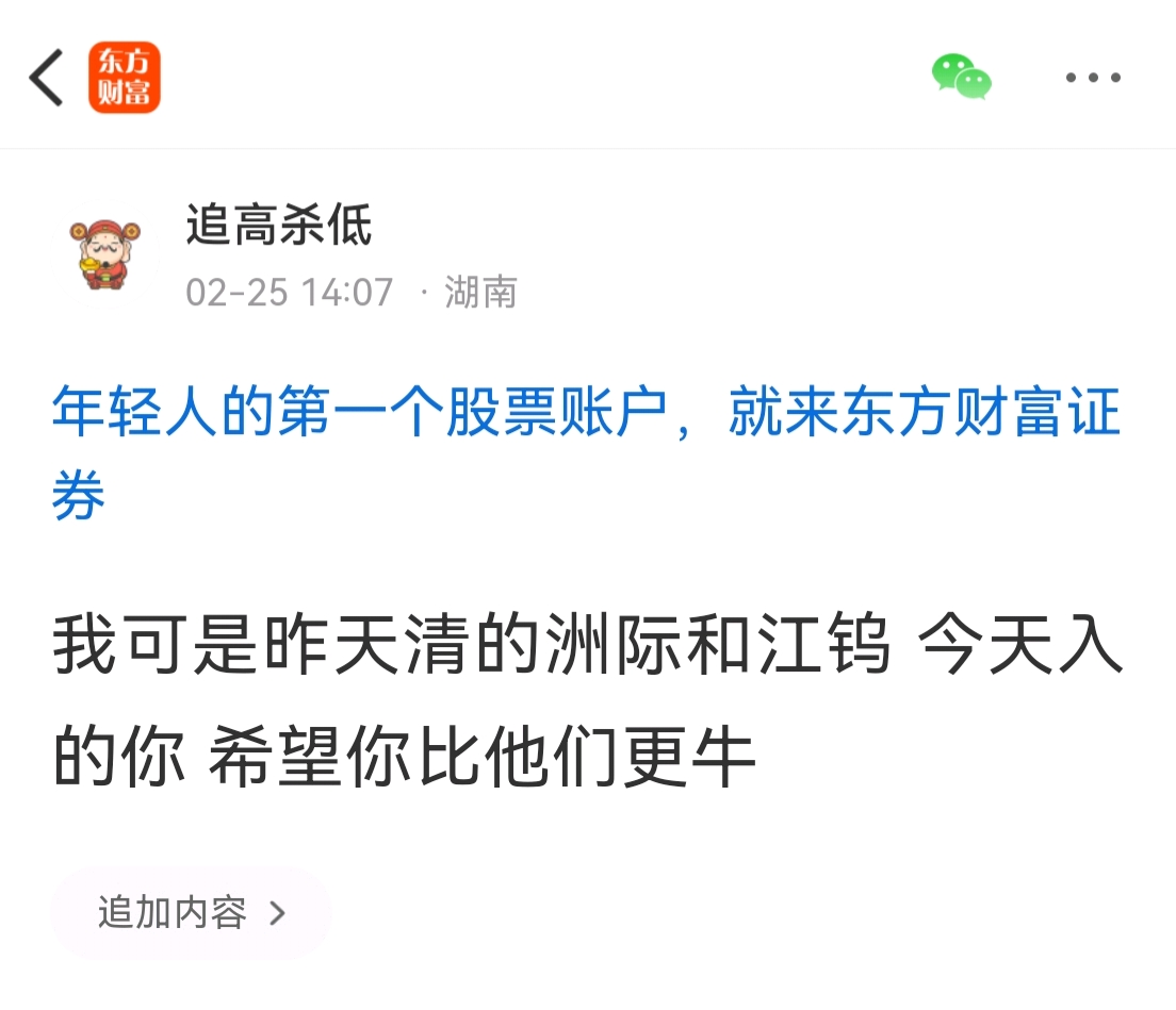 温馨提示: 1.根据《证券法》规定,禁止编造、传播虚假信息或者误导性信息,扰乱证券市场;2.用户在本社区发表的所有资料、言论等仅代表个人观点,与本网站立场无关,不对您构成任何投资建议。用户应基于自己的独立判断,自行决定证券投资并承担相应风险。《东方财富社区管理规定》