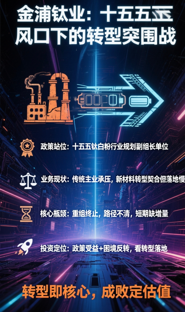 传统钛白粉主业高耗能、受双碳政策压制,基本面承压;转型布局轨交橡胶新材料、磷酸铁锂电材料,方向高度契合,但落地进度偏慢。