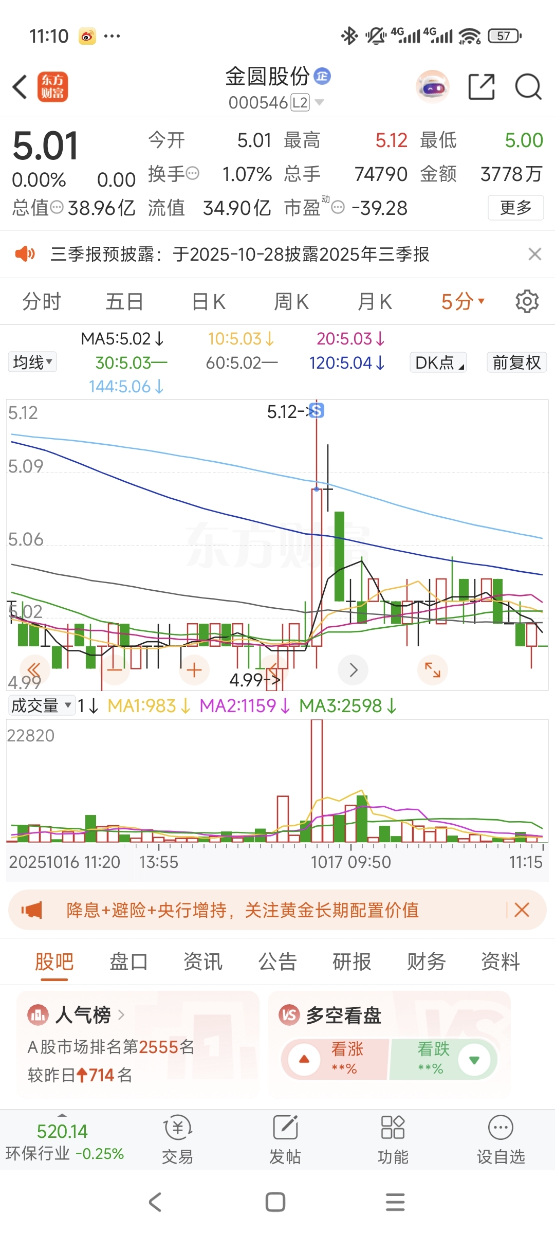 $金圆股份(SZ000546)$ 韭菜们快接盘,4.5我来收你们的带血筹码