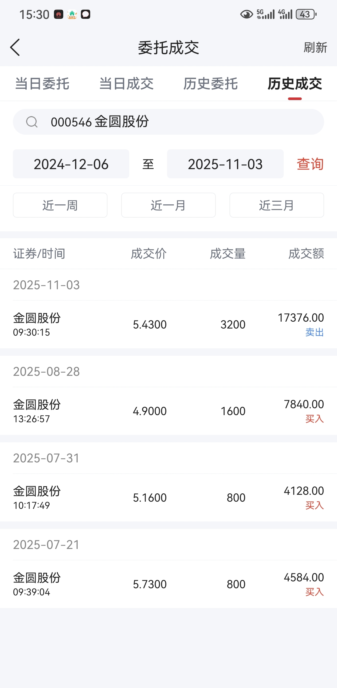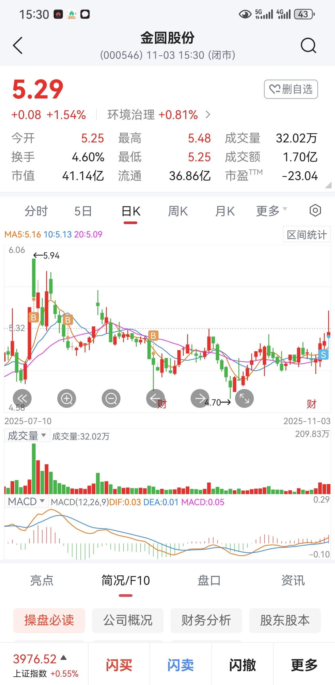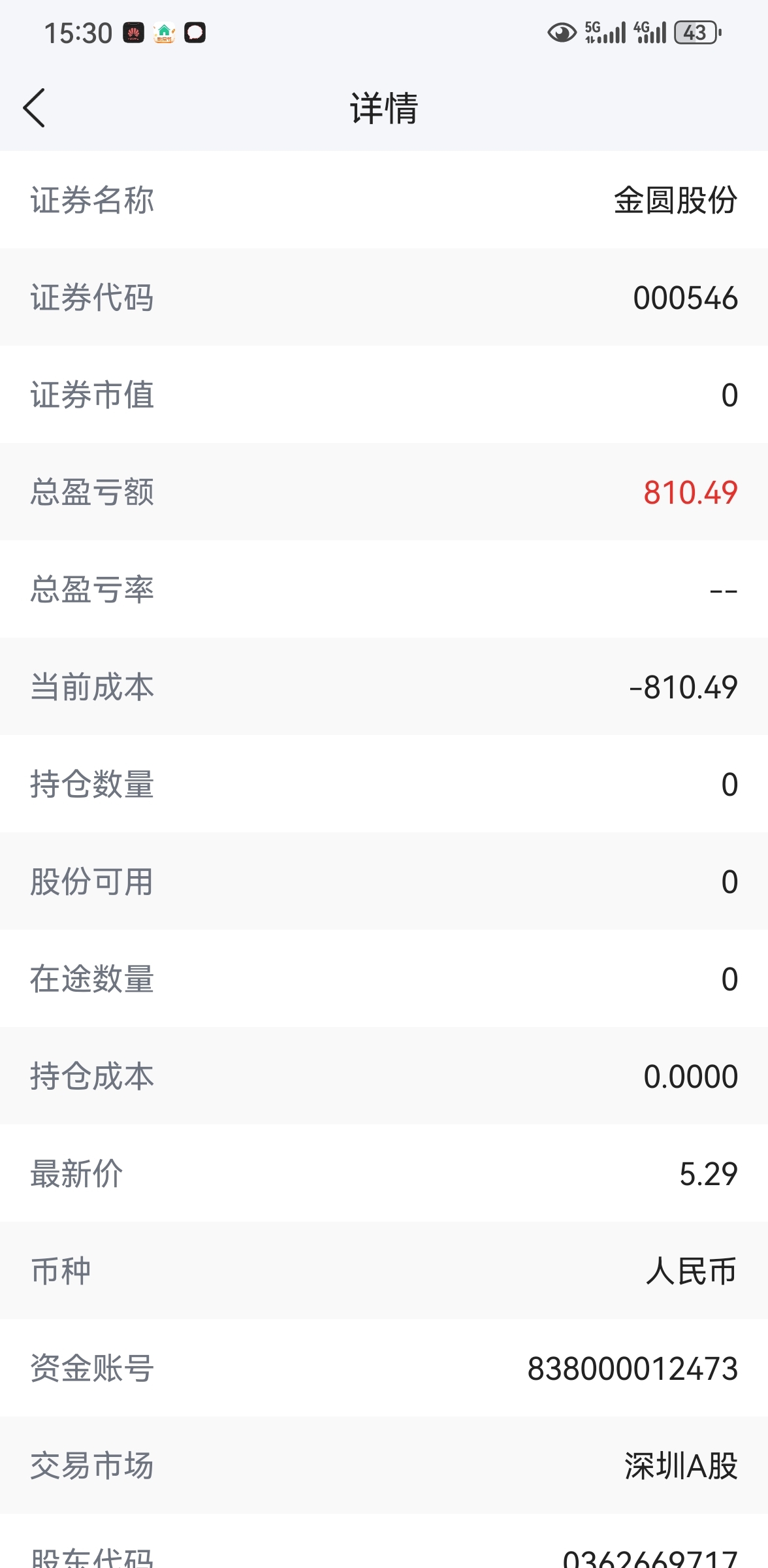 $金圆股份(SZ000546)$ 三次买去,一次卖出,赚了一点!