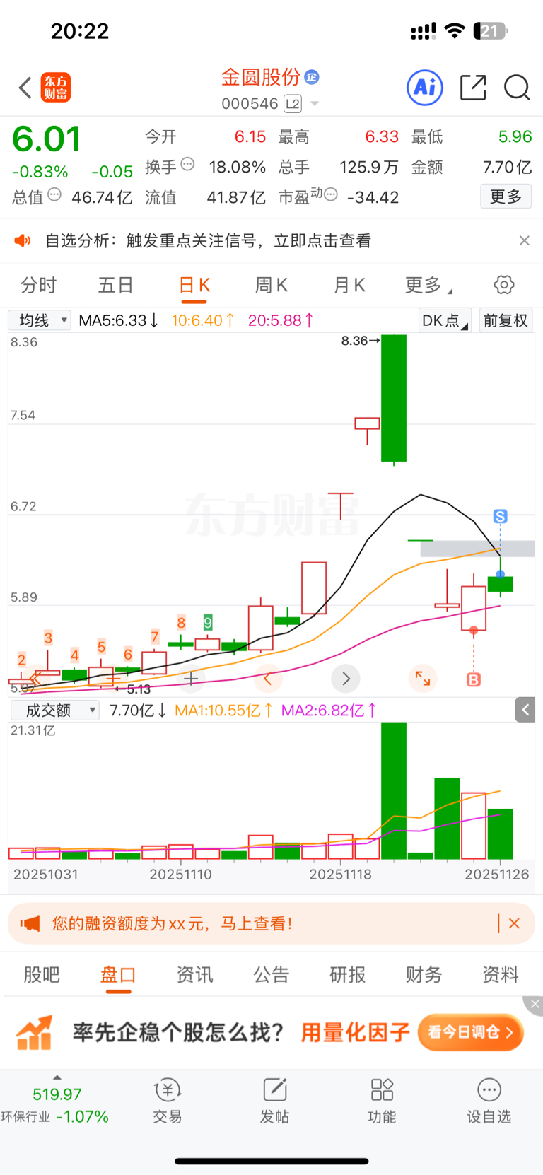 $金圆股份(SZ000546)$ 两天博了10cm的反弹 知足常乐~