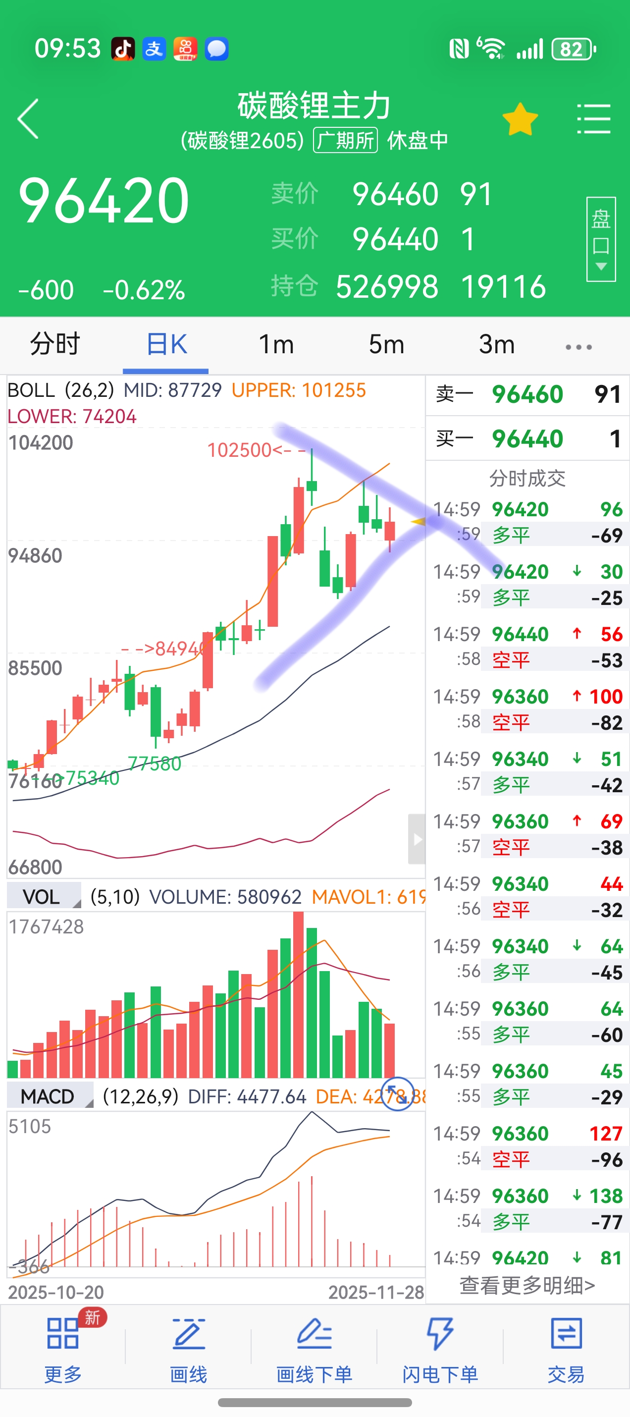 $金圆股份(SZ000546)$ 期货碳酸锂主力下个星期将迎来变盘节点
