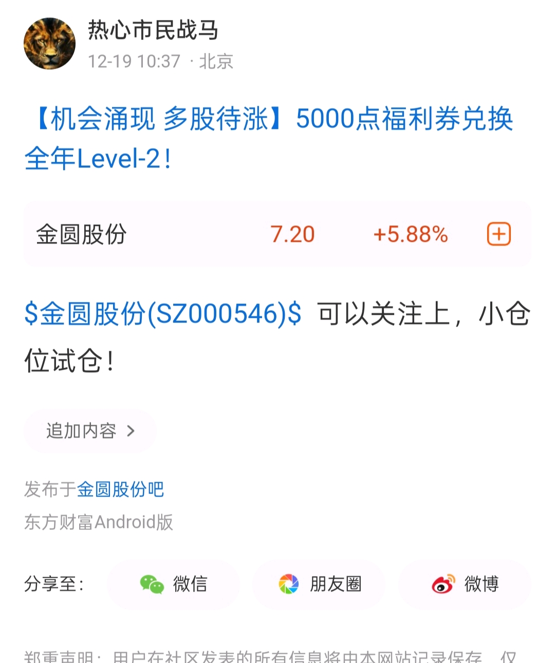 温馨提示: 1.根据《证券法》规定,禁止编造、传播虚假信息或者误导性信息,扰乱证券市场;2.用户在本社区发表的所有资料、言论等仅代表个人观点,与本网站立场无关,不对您构成任何投资建议。用户应基于自己的独立判断,自行决定证券投资并承担相应风险。《东方财富社区管理规定》